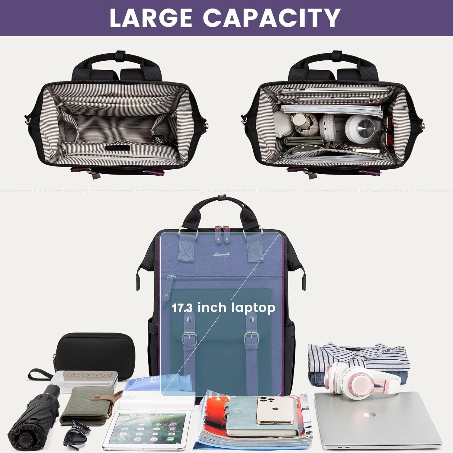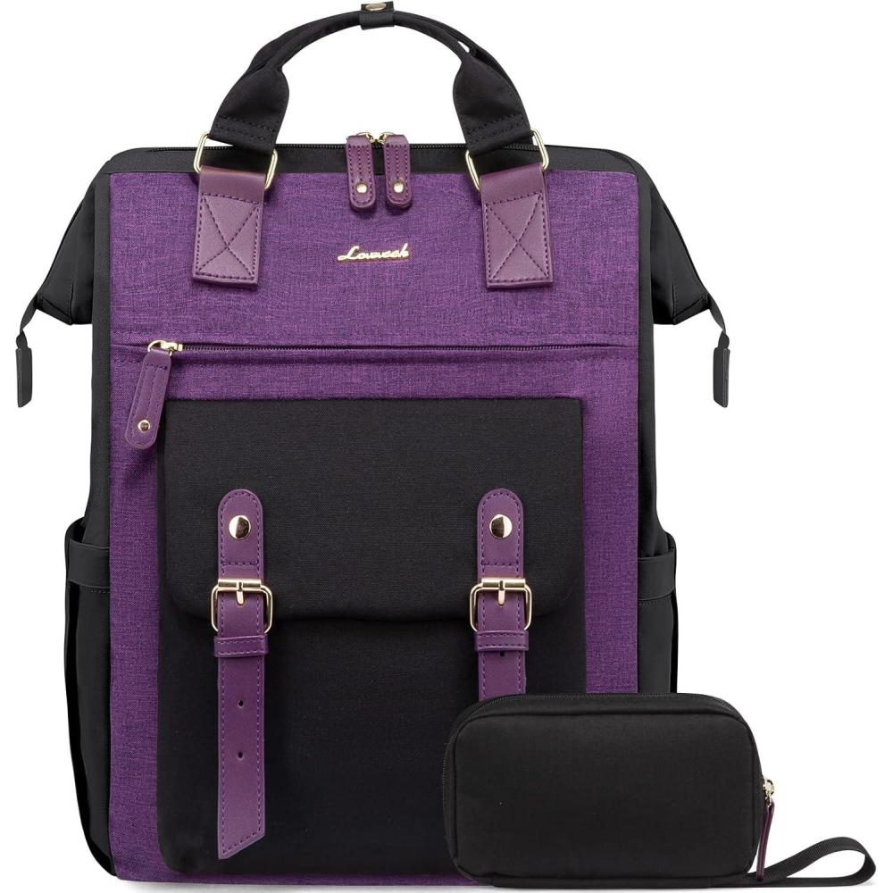 LOVEVOOK Laptop Backpack for Women, Teacher Bag Work Backpack Purse Laptop Computer Back Pack, Business Travel Backpack, Nursing College School Bookbag, 15.6 Inch, Black-Beige-Brown(Black-purple-purple)