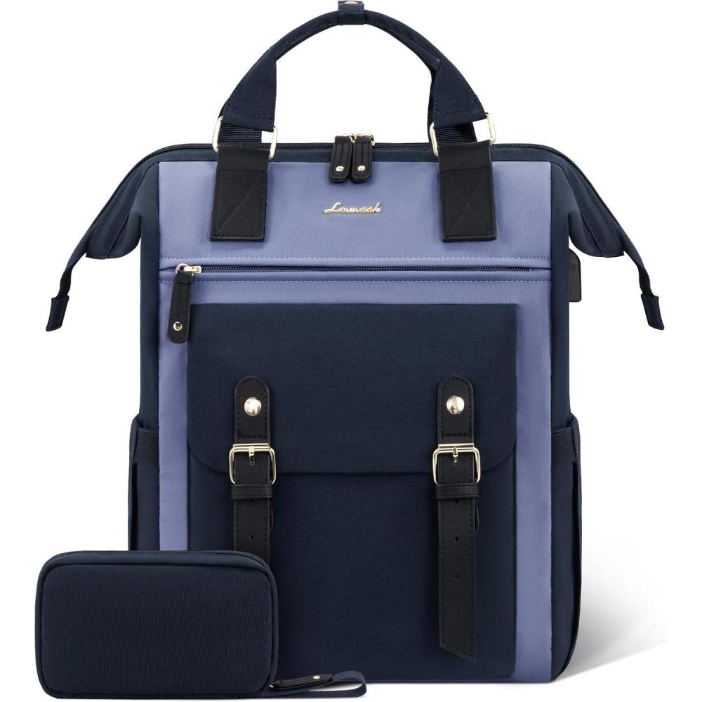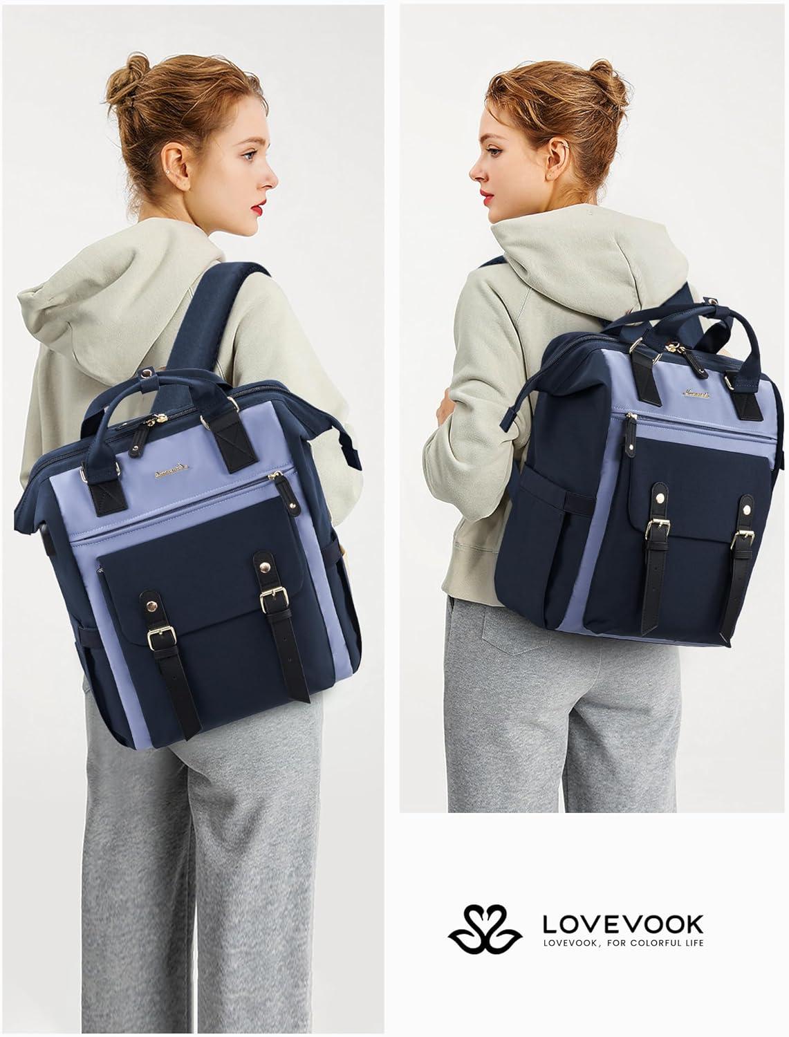 LOVEVOOK Laptop Backpack for Women, Teacher Bag Work Backpack Purse Laptop Computer Back Pack, Business Travel Backpack, Nursing College School Bookbag, 15.6 Inch, Black-Beige-Brown(Blue-grey Blue-black)