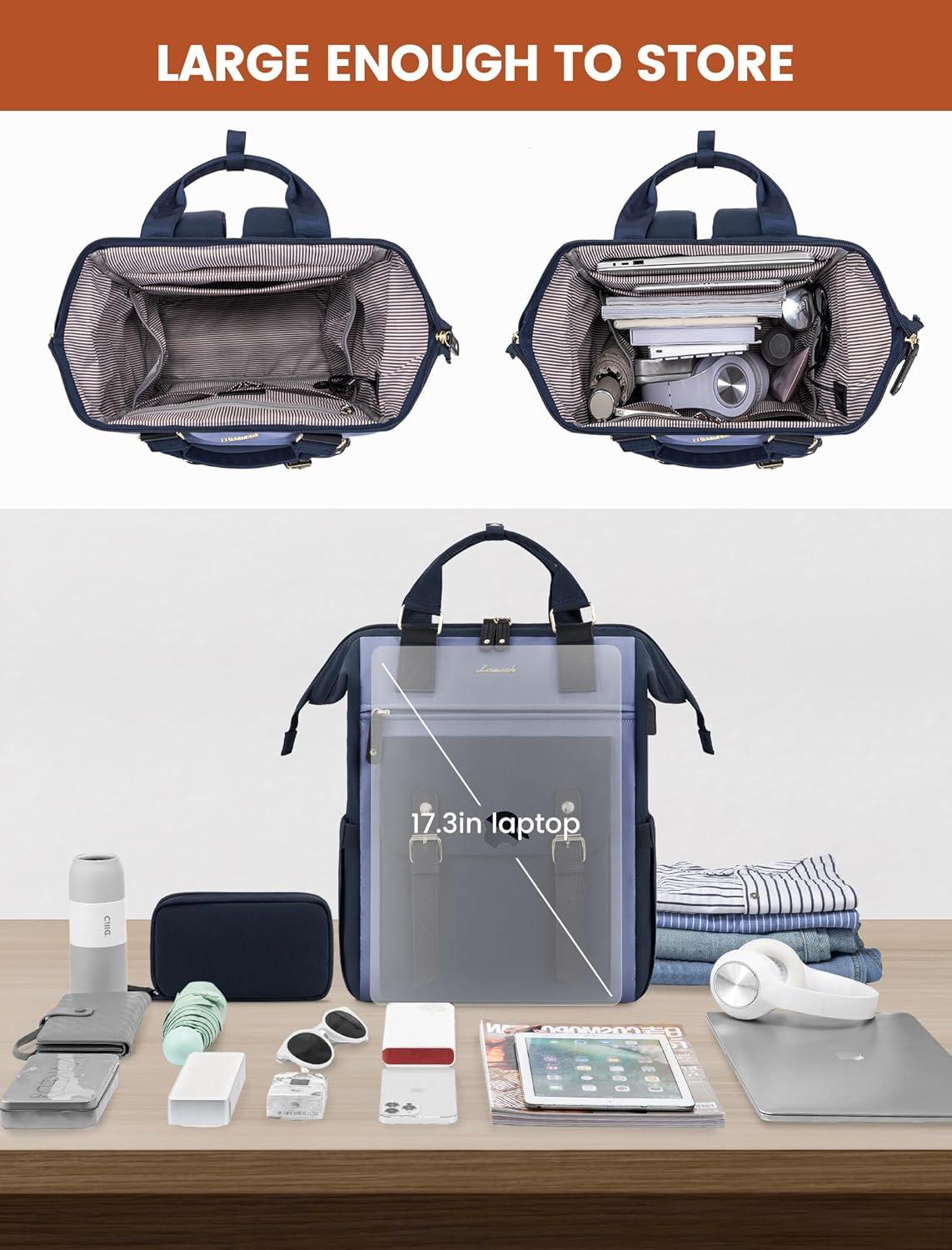 Durable Backpack Purse for Women: Dimension-11.2″L x 5.5″W x 16.5″H. Electronics Organizer Case Size: 7.7″L x 2″W x 4.3″H. Comes with a dust bag for storage. The padded backpack with laptop compartment, is a great laptop bag for women work, applicable to teachers, doctors, nurses, comutters. Easy to organize all supplies and fit up to 15.6″ laptops well.