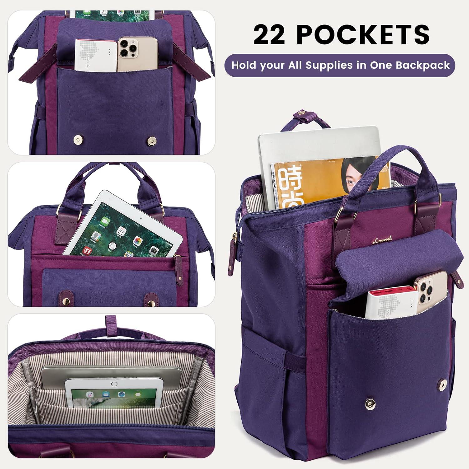 LOVEVOOK Laptop Backpack for Women, Teacher Bag Work Backpack Purse Laptop Computer Back Pack, Business Travel Backpack, Nursing College School Bookbag, 15.6 Inch, Black-Beige-Brown(Purple-purple-purple)