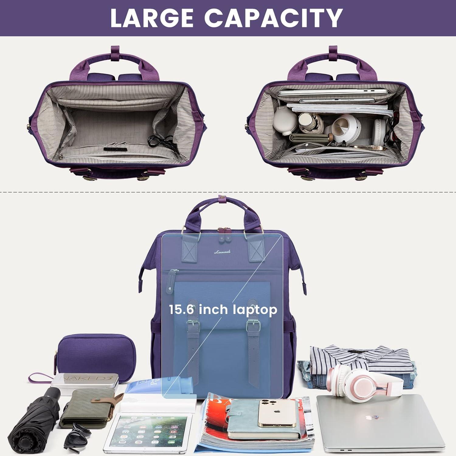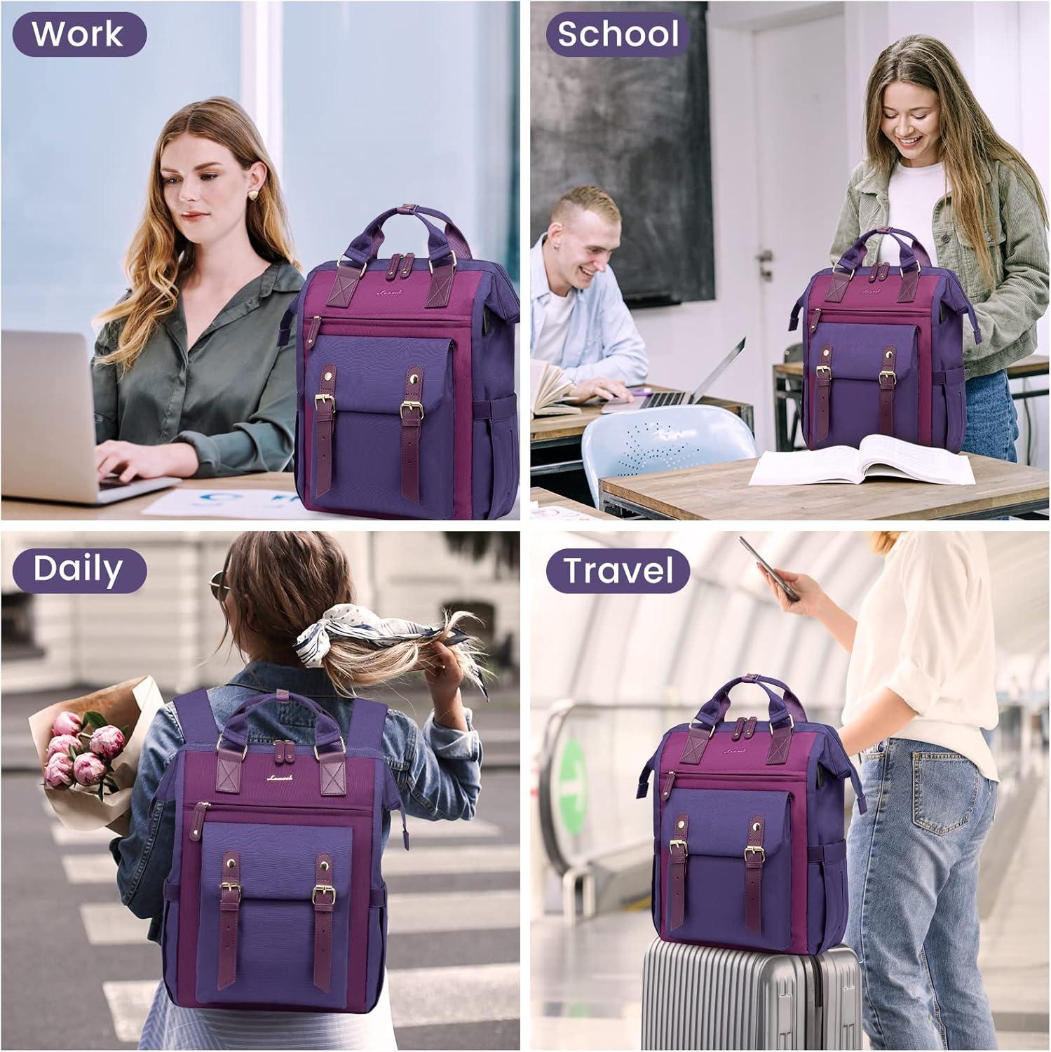LOVEVOOK Laptop Backpack for Women, Teacher Bag Work Backpack Purse Laptop Computer Back Pack, Business Travel Backpack, Nursing College School Bookbag, 15.6 Inch, Black-Beige-Brown(Purple-purple)