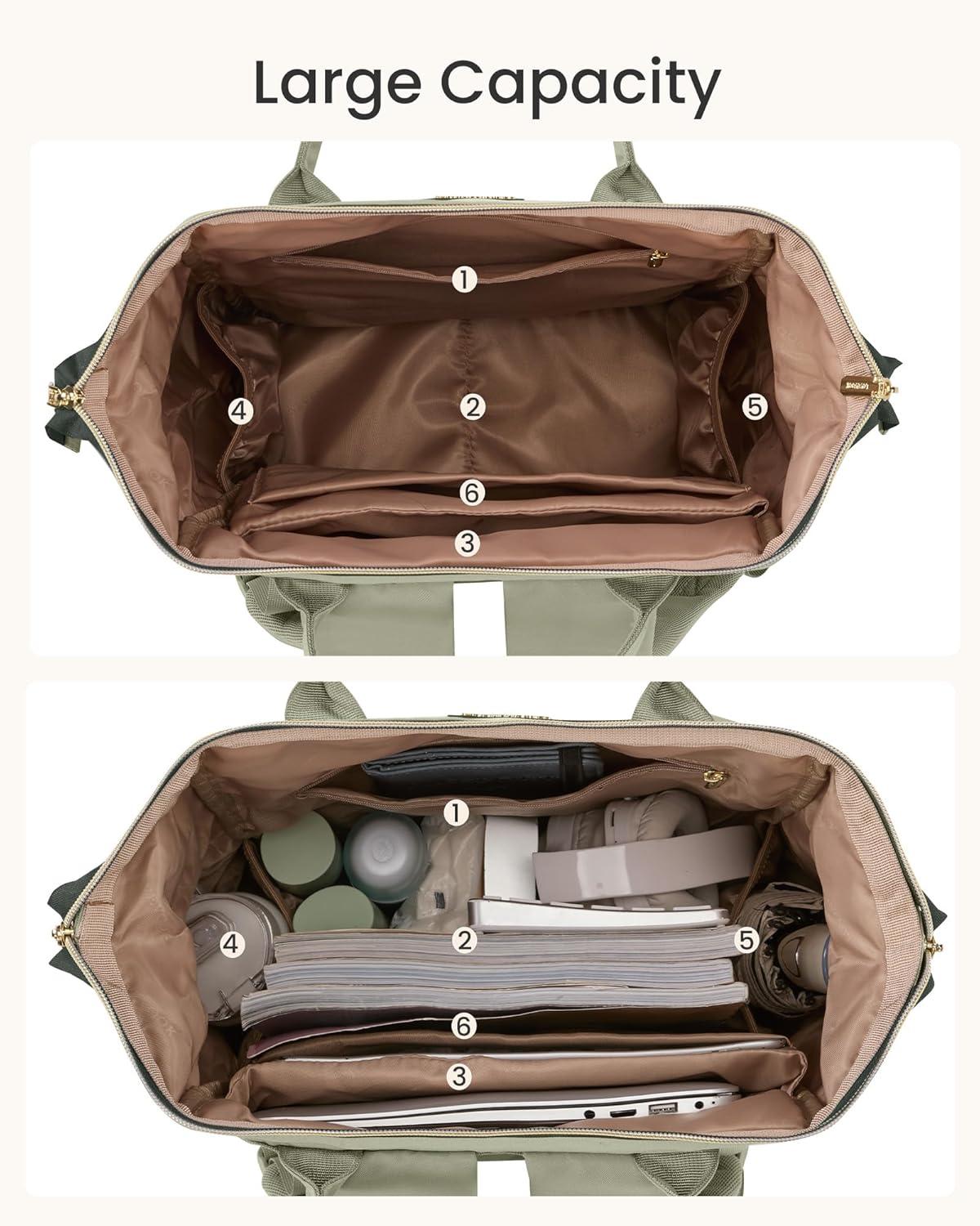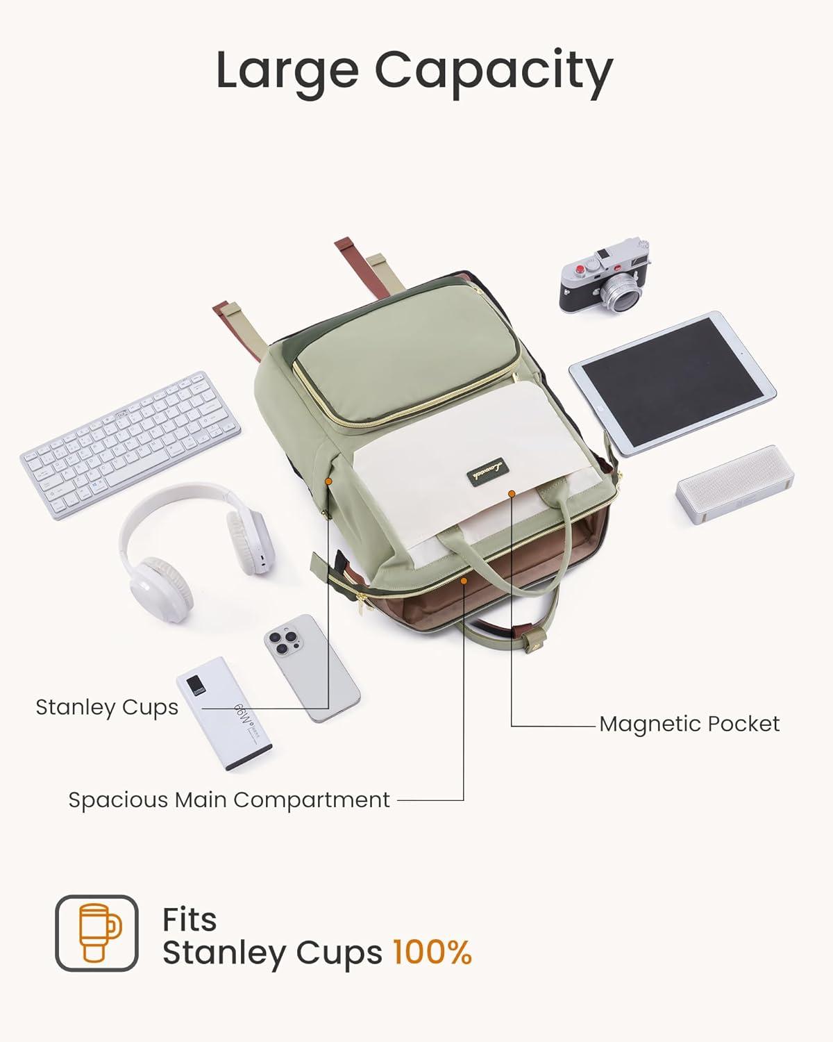 imageLOVEVOOK Laptop Backpack for Women with Giant Tumbler Holder Pocket 156 inch Travel Work Backpack Purse for Nurse Teacher Waterproof School Bag College Bookbag Cute Casual Daypack for GirlsBean Green Beige