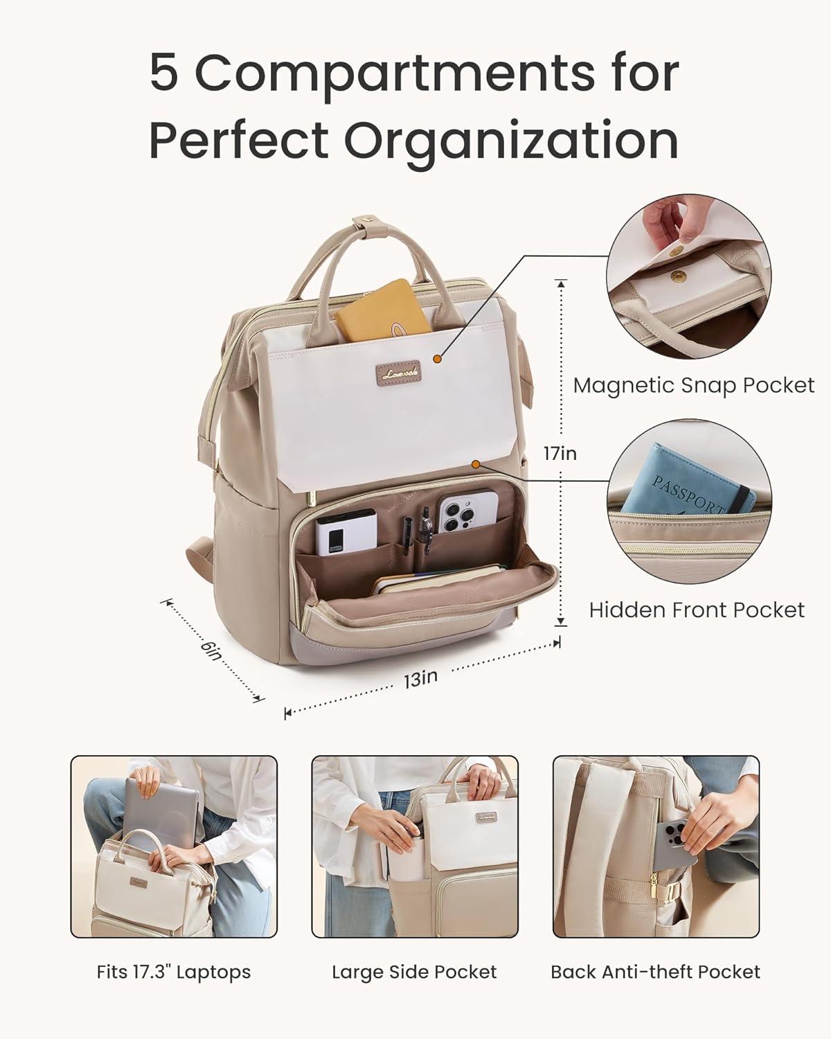 imageLOVEVOOK Laptop Backpack for Women with Giant Tumbler Holder Pocket 156 inch Travel Work Backpack Purse for Nurse Teacher Waterproof School Bag College Bookbag Cute Casual Daypack for GirlsKhaki Beige