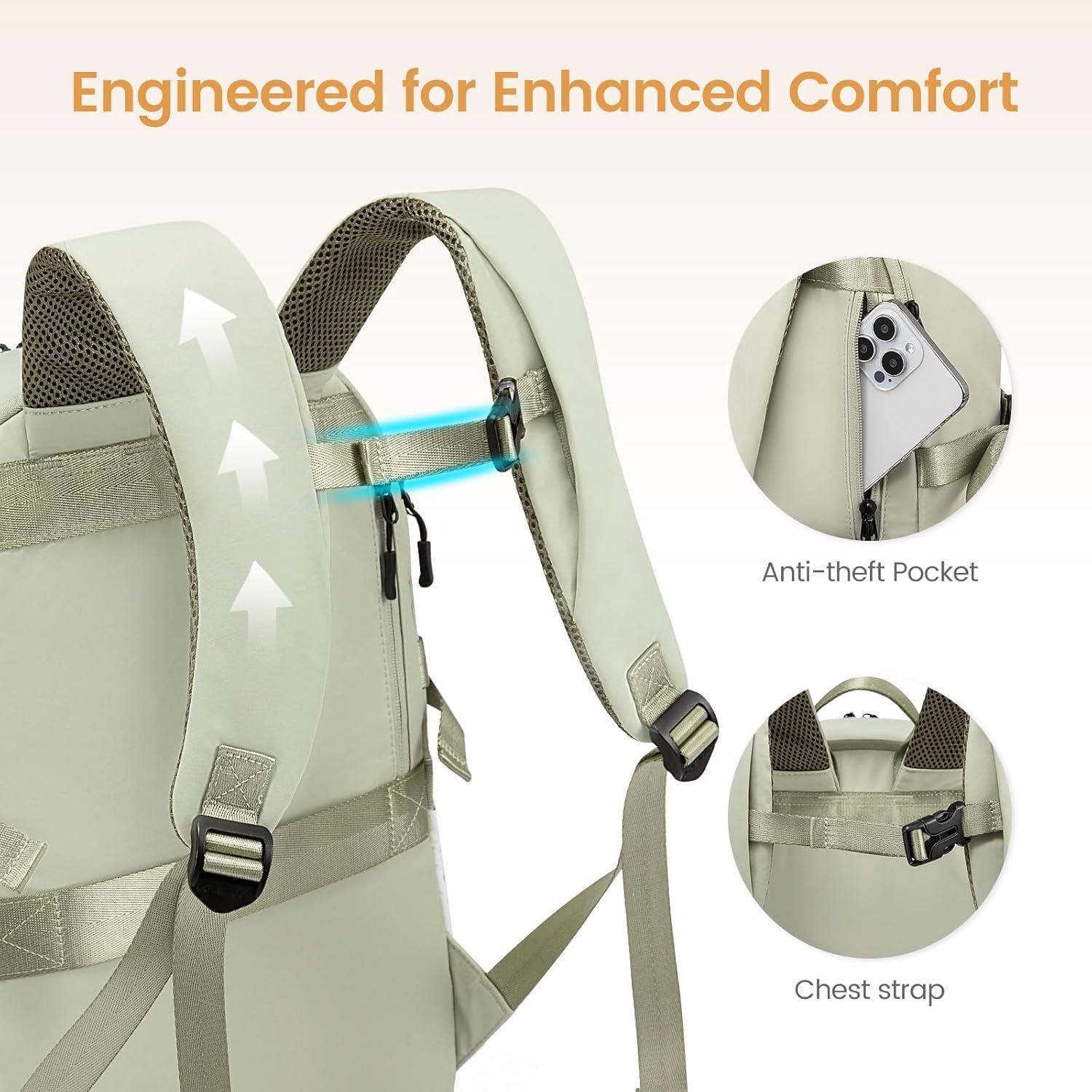LOVEVOOK Laptop Backpack for Women with Pouch Pocket for Large Capacity Cup,15.6 Inch Work Computer Laptop Bag College Teacher Backpack Purse,Lightweight Travel Hiking Overnight Bag,White-Bean Green(White – Beige Grey)