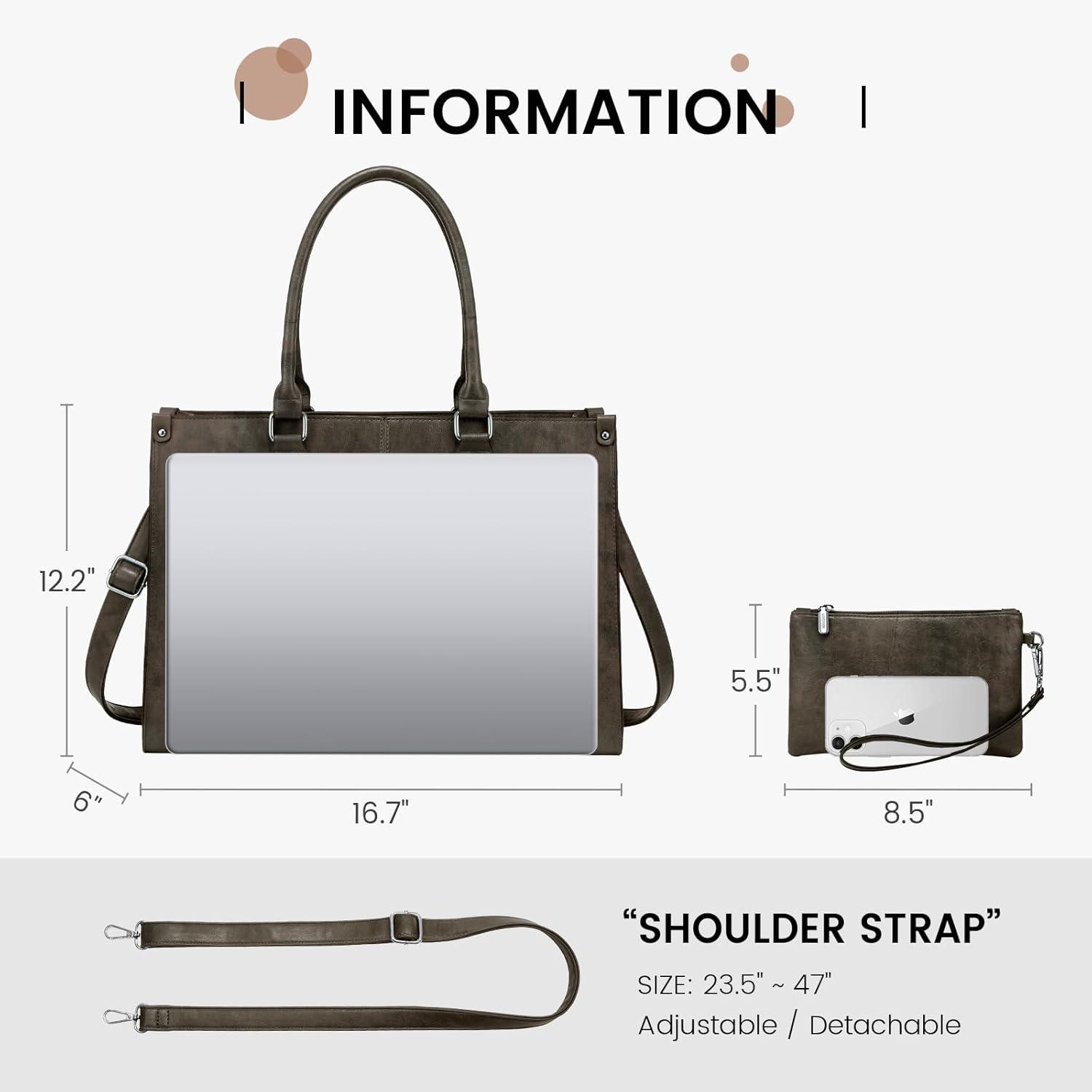 【Large Capacity Laptop Tote Bag】: This laptop bag for women is 16.7″ x 6″ x 12.2″ and weighs 3 lbs, designed for laptops up to 15.6 inches. It has dedicated laptop and tablet compartments with premium padding for protection. With 12 compartments and pockets, including anti-theft and pen slots, it ensures organized storage. The included clutch purse can be used separately or within the main bag, perfect for storing your phone, keys, cards, and makeup—an all-in-one bag.