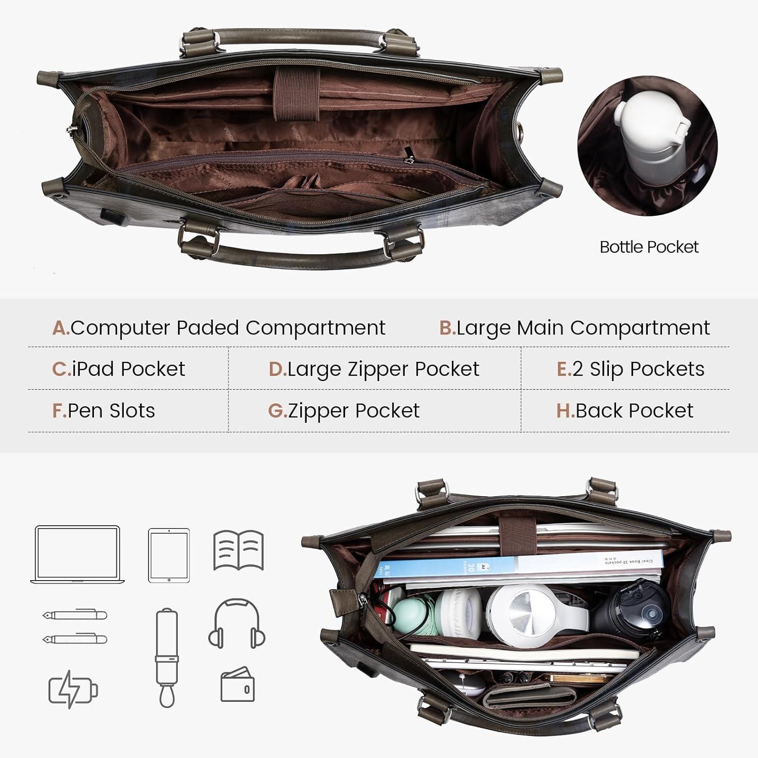 【The Ultimate Women's Tote Bag】: Crafted from premium vintage vegan leather with a classic design, this laptop tote exudes elegance and sophistication. Perfect for professional women, college students, teachers, and fashion enthusiasts, it's an ideal companion for business, work, leisure, and travel. Whether for personal use or as a gift, it embodies style and charm.