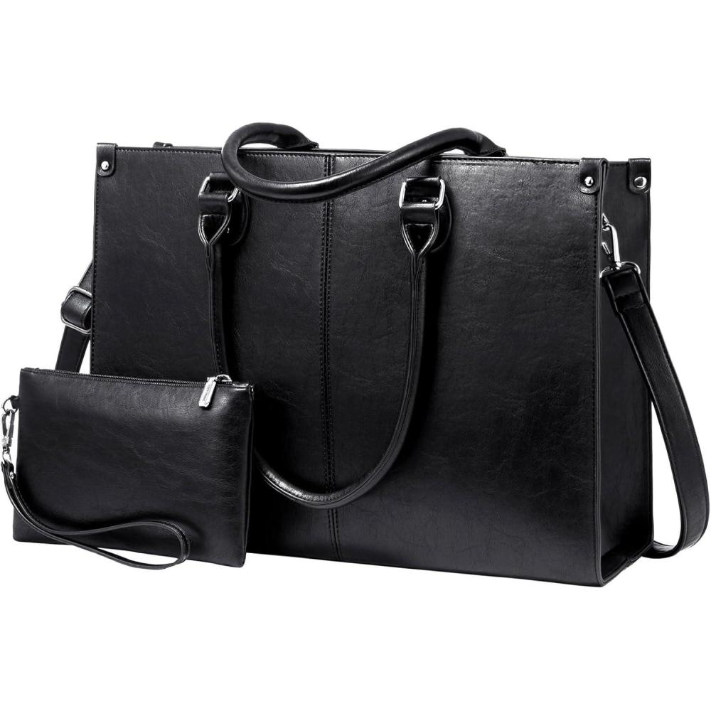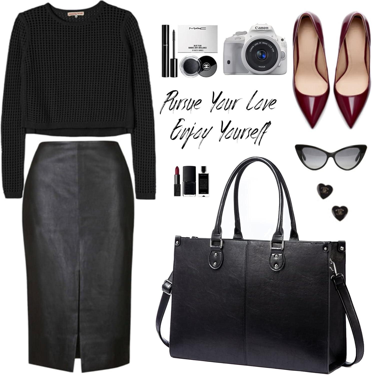 imageLOVEVOOK Laptop Tote Bag for Women 156 Inch Large Capacity Vintage Leather Work Computer Bag Business Casual Shoulder Handbag Dark BrownBlack