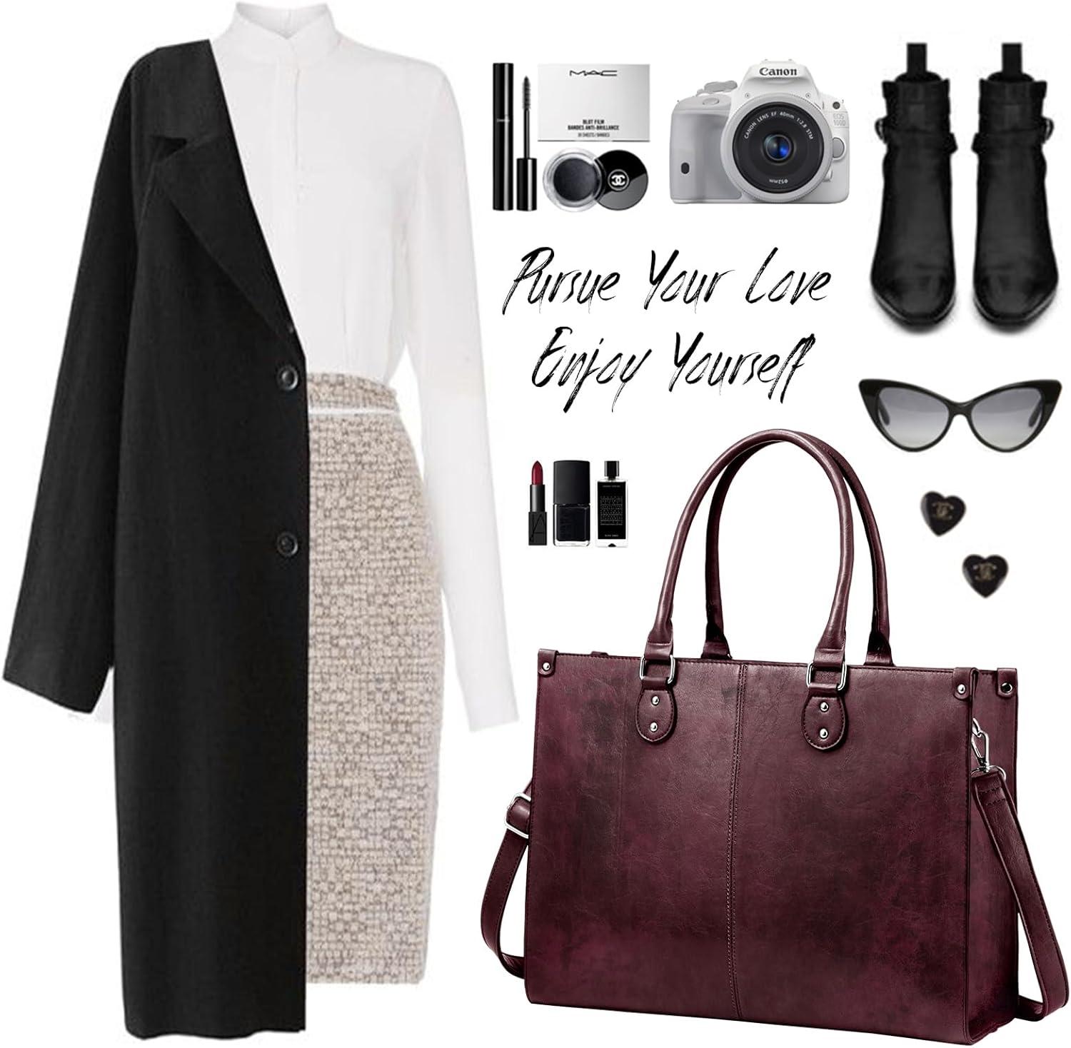 imageLOVEVOOK Laptop Tote Bag for Women 156 Inch Large Capacity Vintage Leather Work Computer Bag Business Casual Shoulder Handbag Dark BrownFuchsia