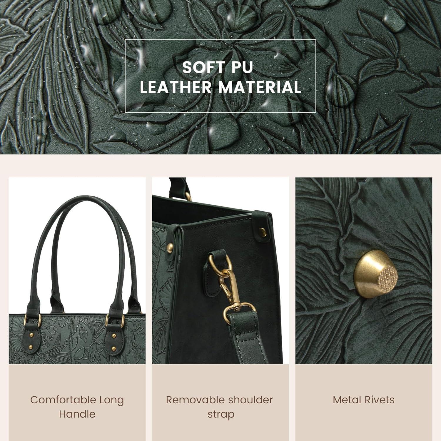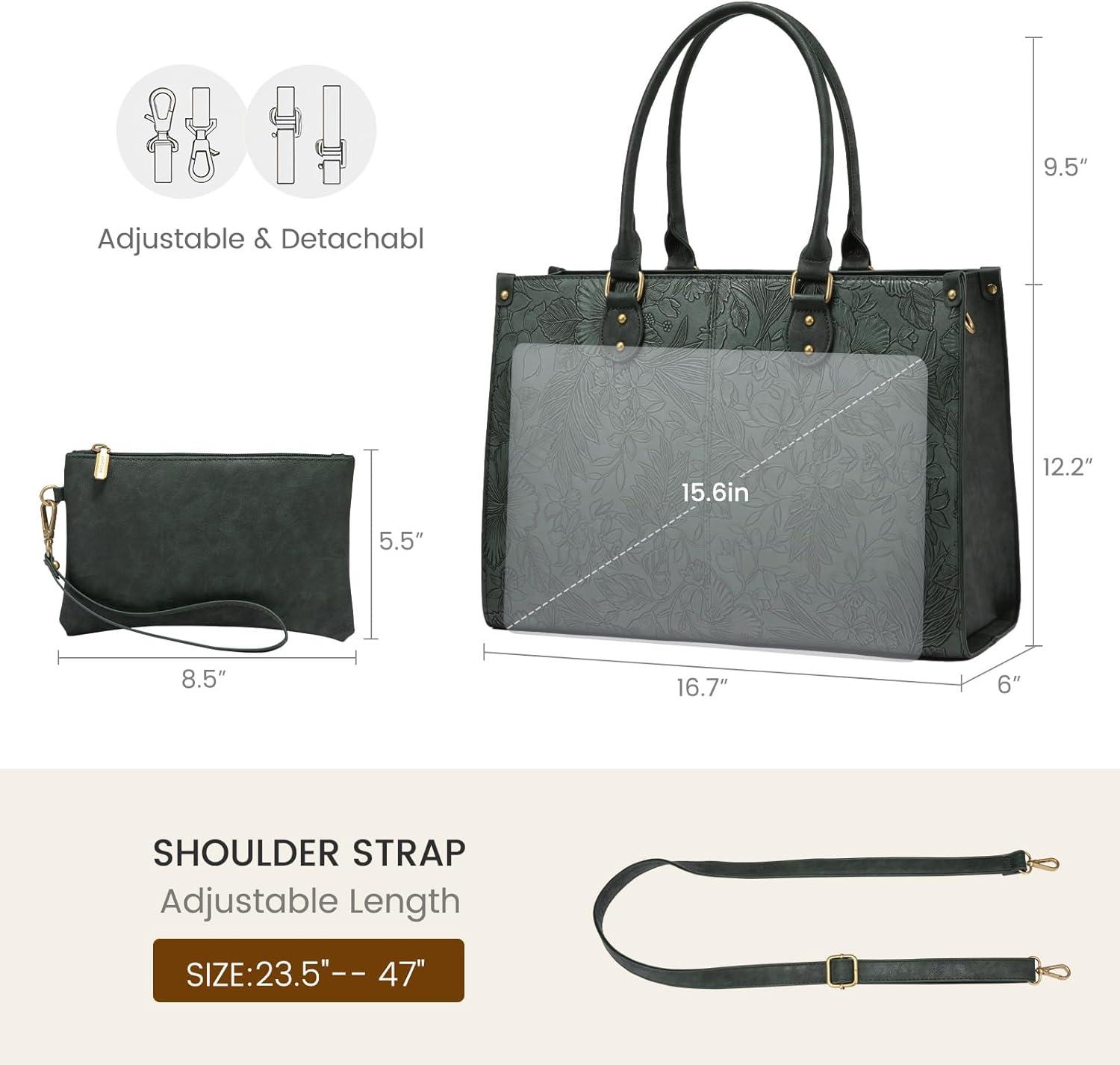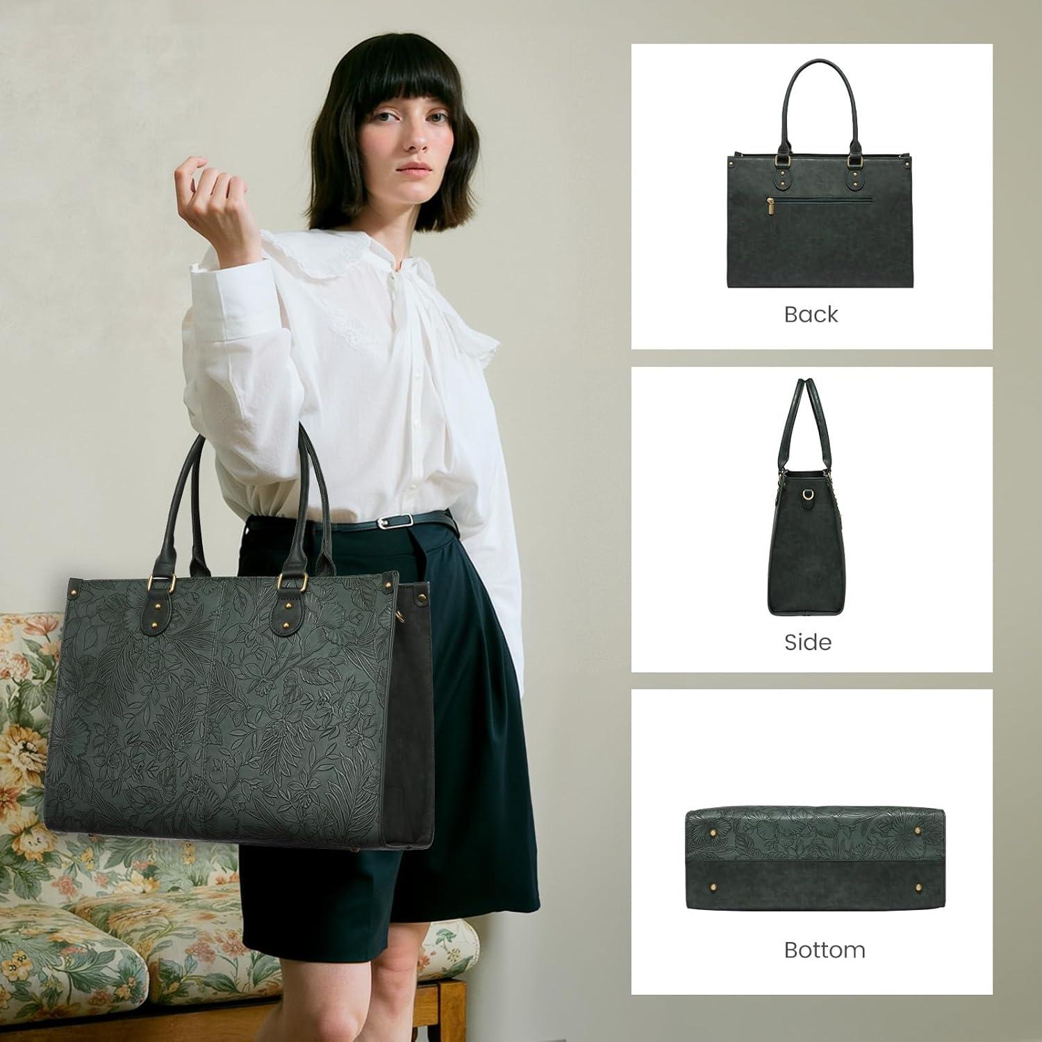 imageLOVEVOOK Laptop Tote Bag for Women 156 Inch Large Capacity Vintage Leather Work Computer Bag Business Casual Shoulder Handbag Dark BrownGreen Embossed