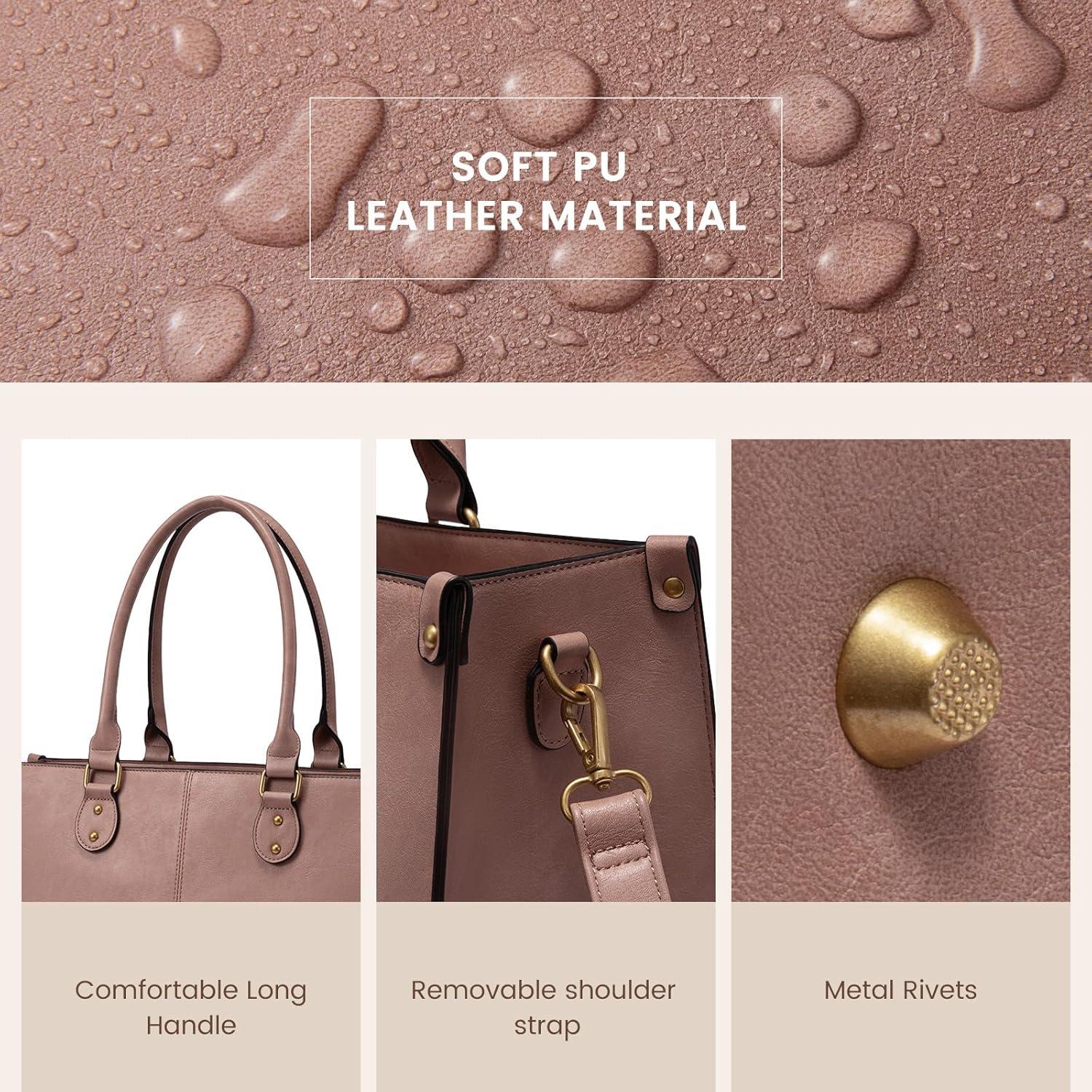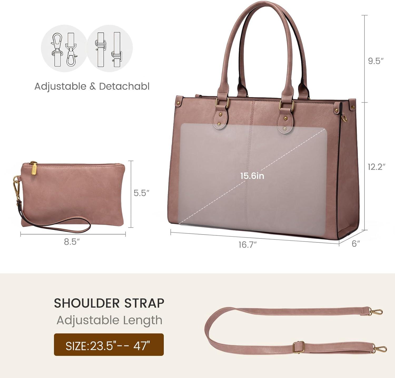 imageLOVEVOOK Laptop Tote Bag for Women 156 Inch Large Capacity Vintage Leather Work Computer Bag Business Casual Shoulder Handbag Dark BrownLotus Pink