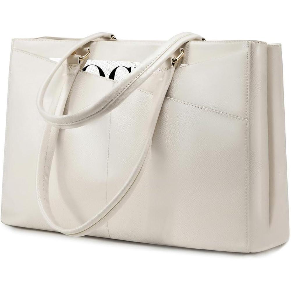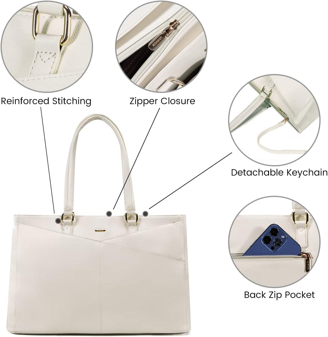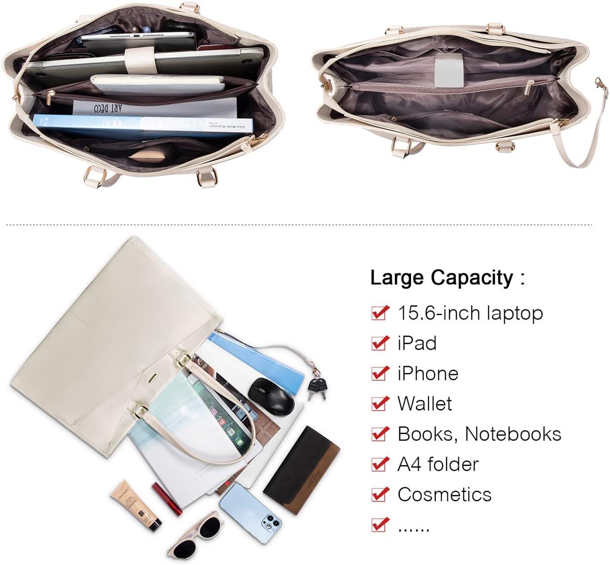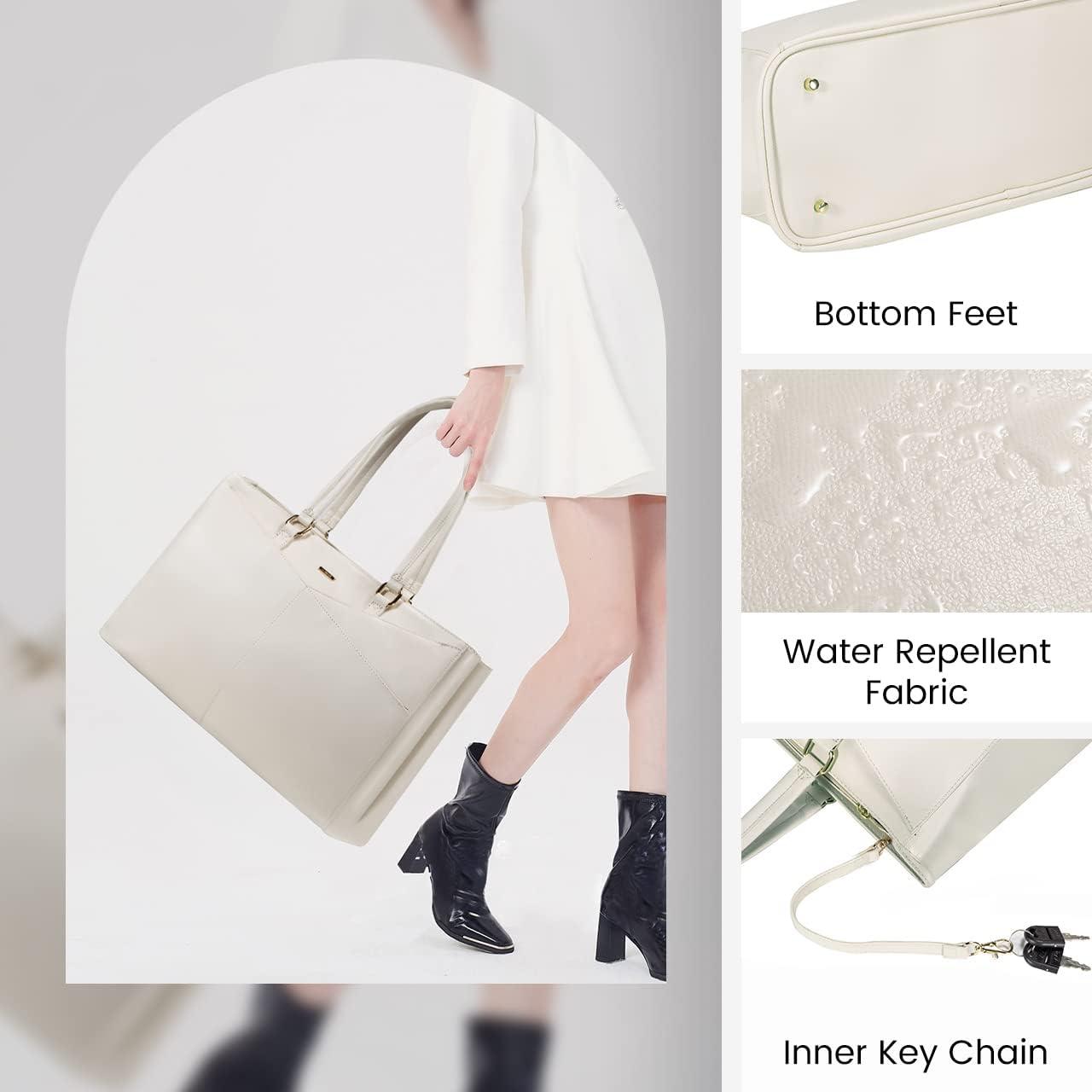 LOVEVOOK Laptop Tote Bag for Women 15.6 Inch Waterproof Leather Computer Bags Business Office Work Briefcase Black(Beige)