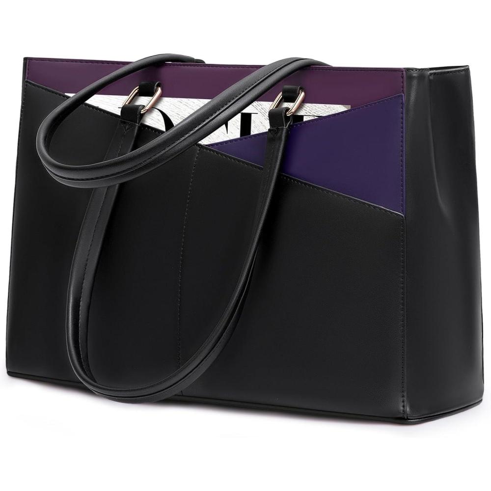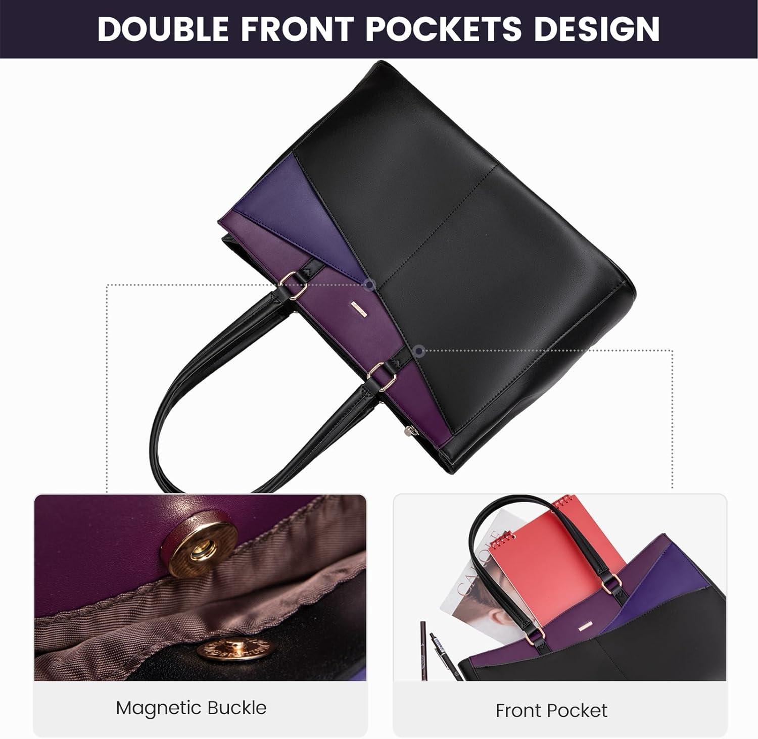 LOVEVOOK Laptop Tote Bag for Women 15.6 Inch Waterproof Leather Computer Bags Business Office Work Briefcase Black(Black/Purple)