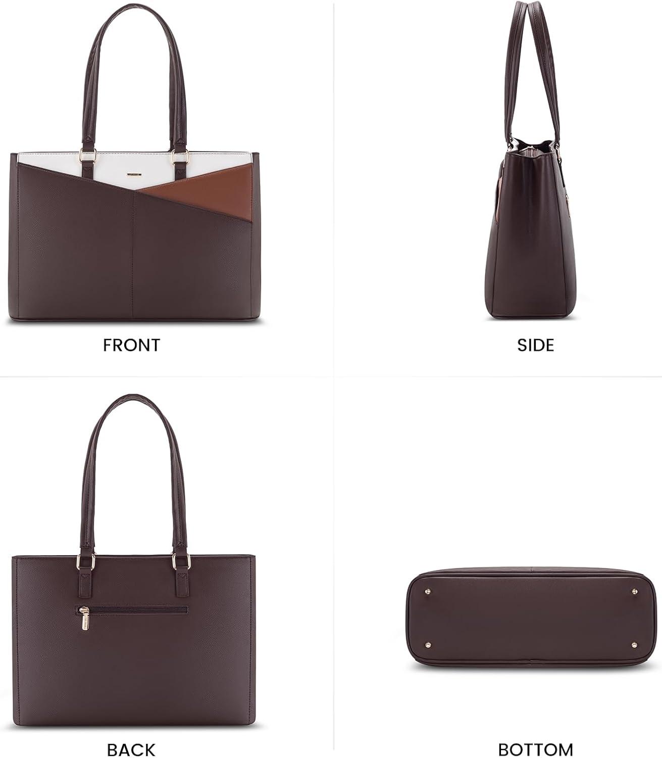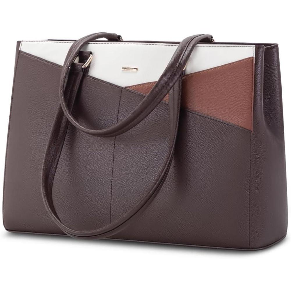 imageLOVEVOOK Laptop Tote Bag for Women 156 Inch Waterproof Leather Computer Bags Business Office Work Briefcase BlackCoffeeBrownBeige