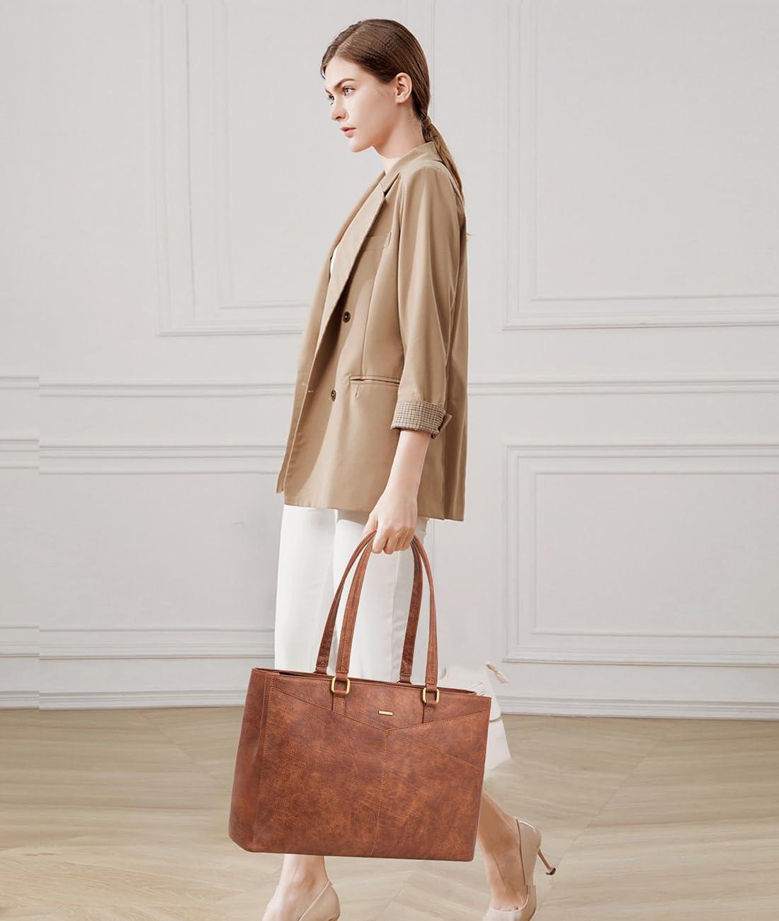 LOVEVOOK Laptop Tote Bag for Women 15.6 Inch Waterproof Leather Computer Bags Business Office Work Briefcase Black(Vintage Brown)