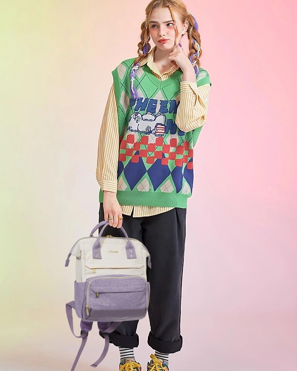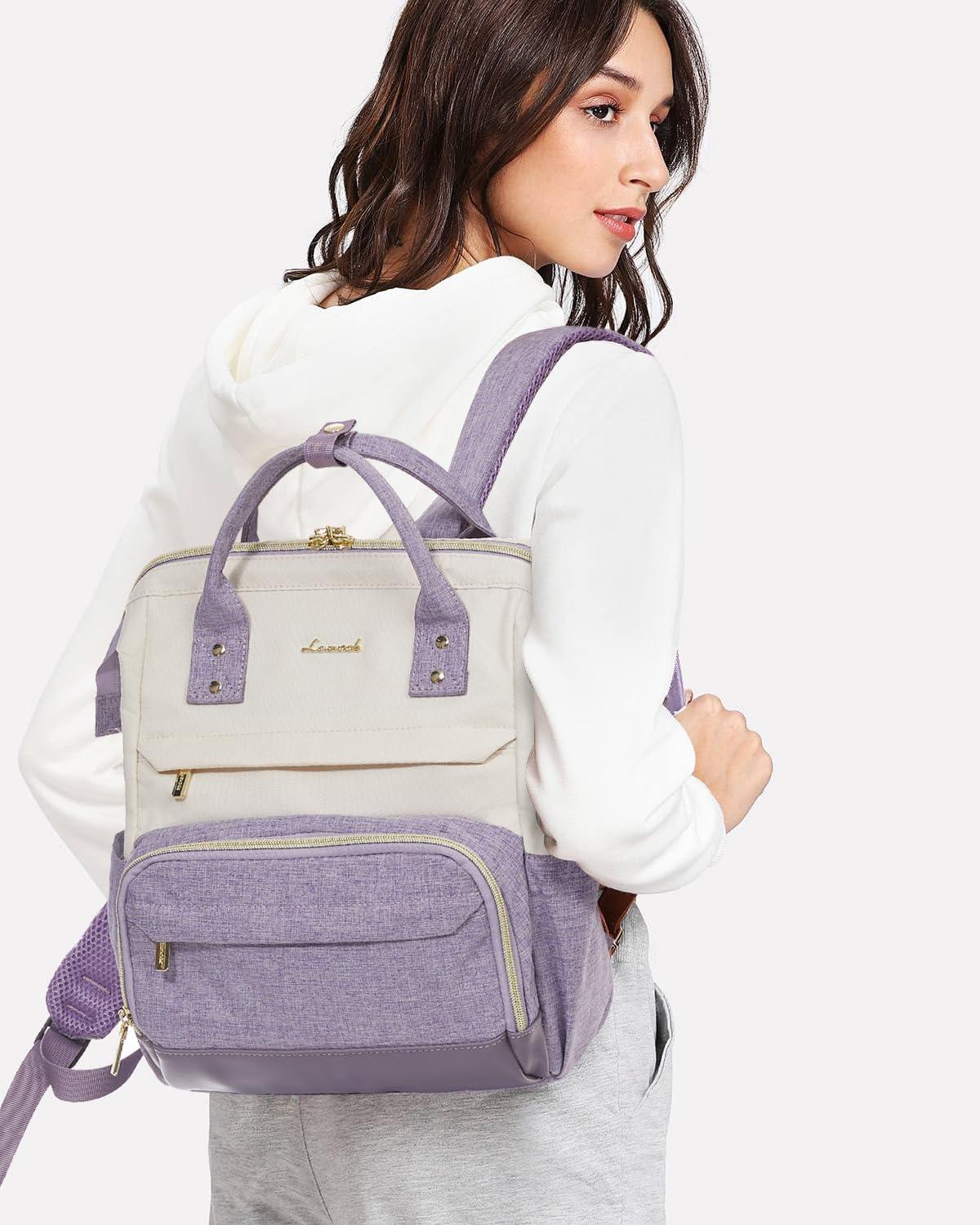 LOVEVOOK Mini Backpack for Women, Small Backpacks Purse, College Bookbag for School, Fashion Bag for Travel Work Gift, Lightweight Daypack, Beige-Black-Brown(Beige-taro Purple)