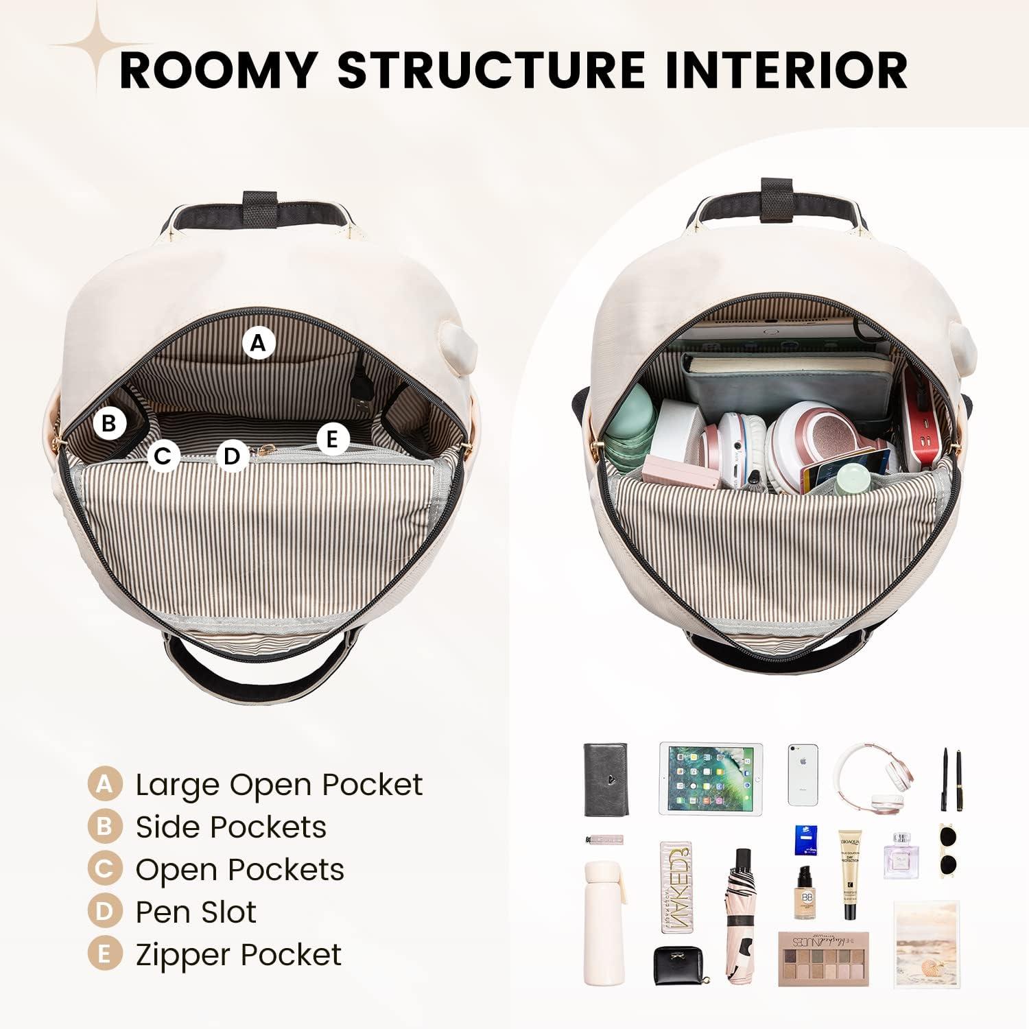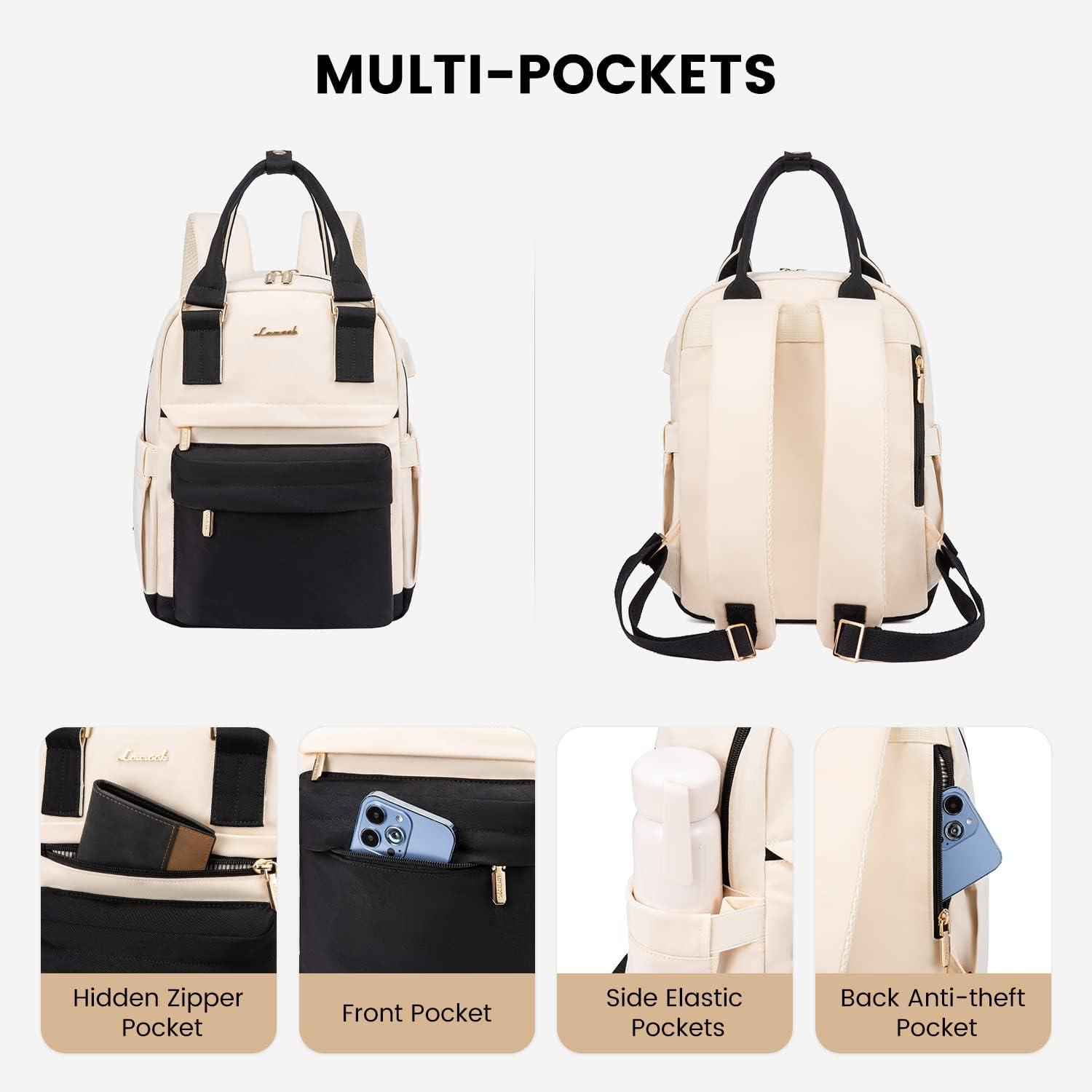 imageLOVEVOOK Mini Backpack for Women Stylish Waterproof Backpack Purse with USB Port Cute Bookbag for College School TravelBlack  Beige