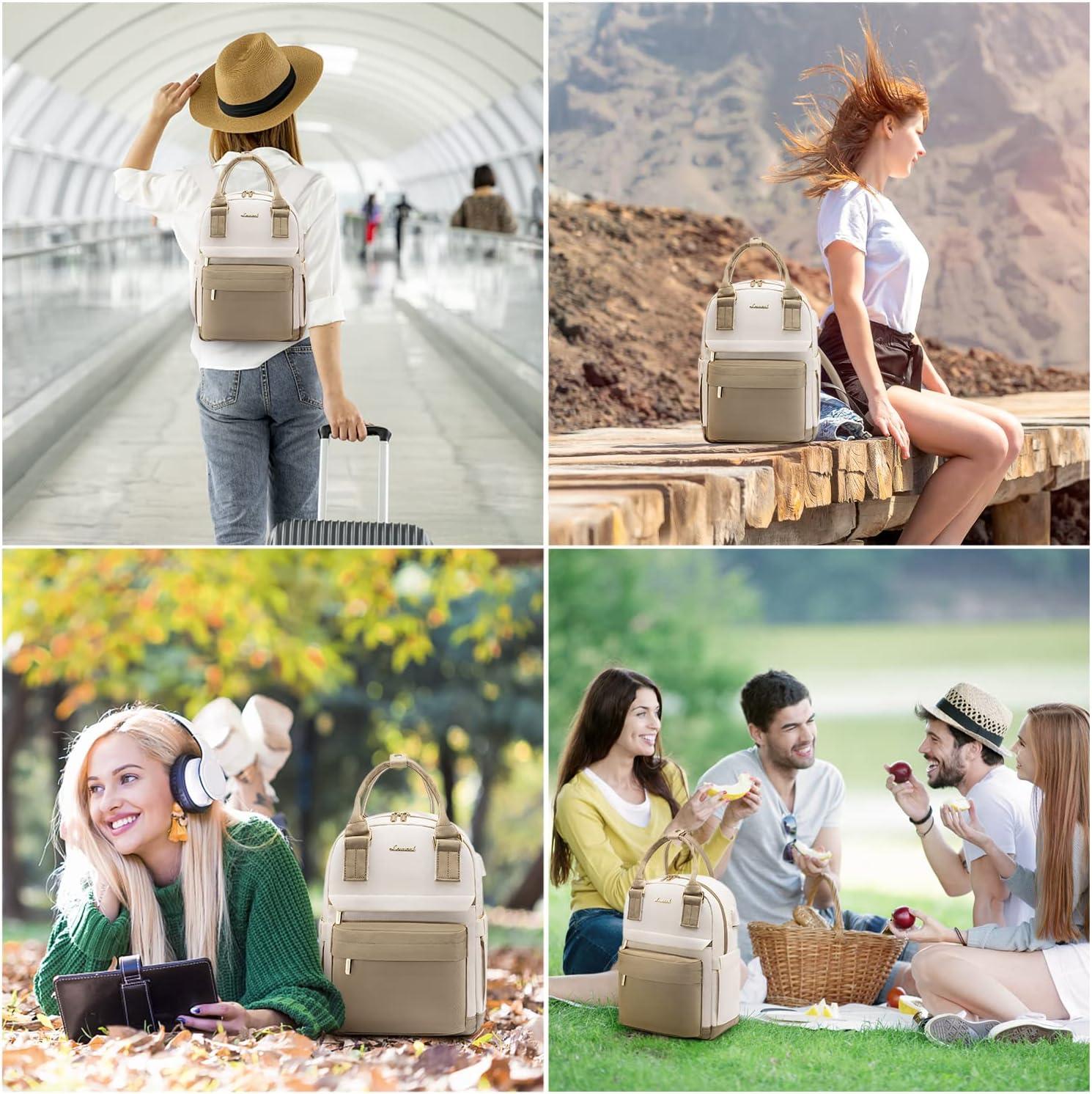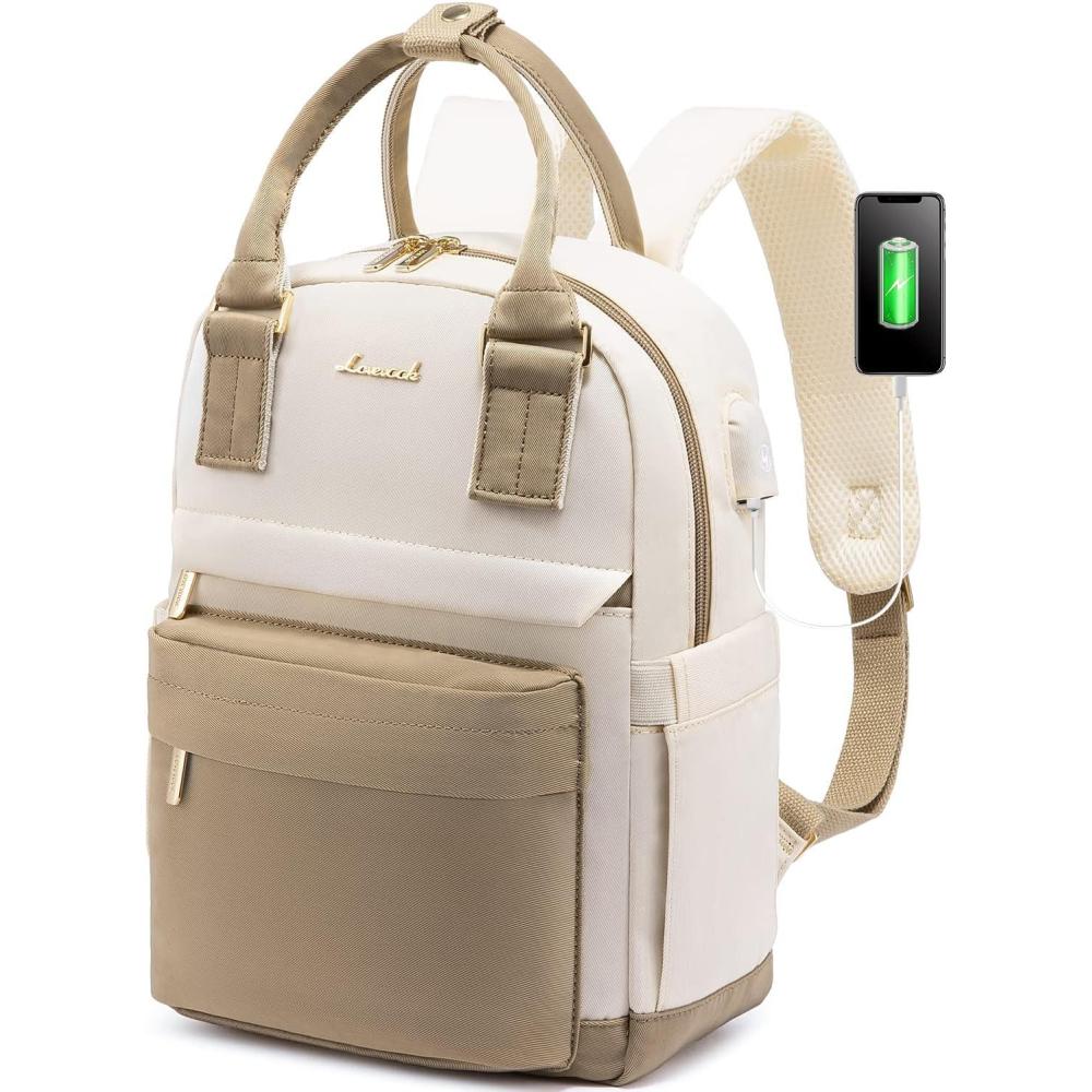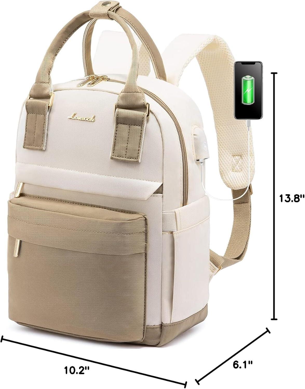 LOVEVOOK Mini Backpack for Women Stylish Waterproof Backpack Purse with USB Port, Cute Bookbag for College School Travel(Khaki & Beige(separate Laptop Compartment))