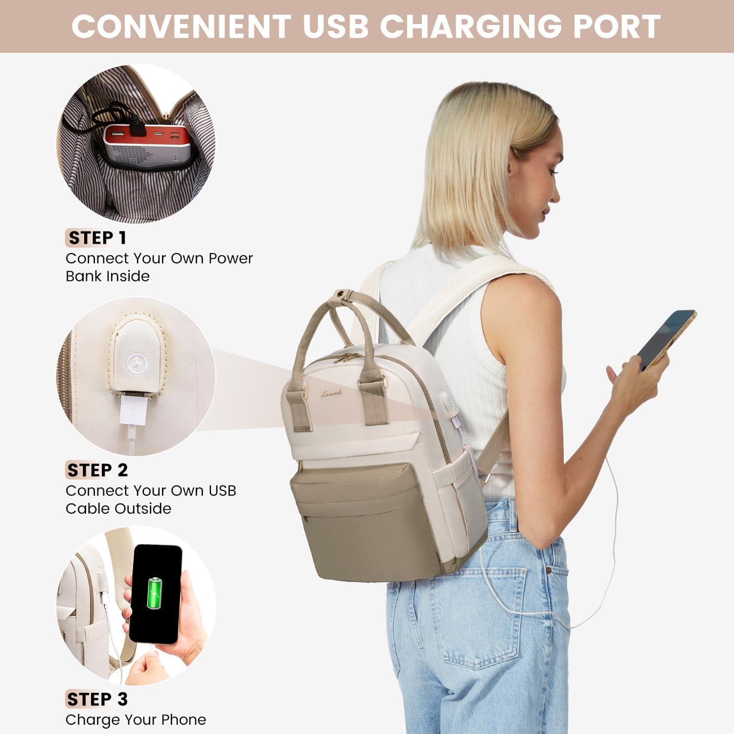 imageLOVEVOOK Mini Backpack for Women Stylish Waterproof Backpack Purse with USB Port Cute Bookbag for College School TravelKhaki  Beigeseparate Laptop Compartment