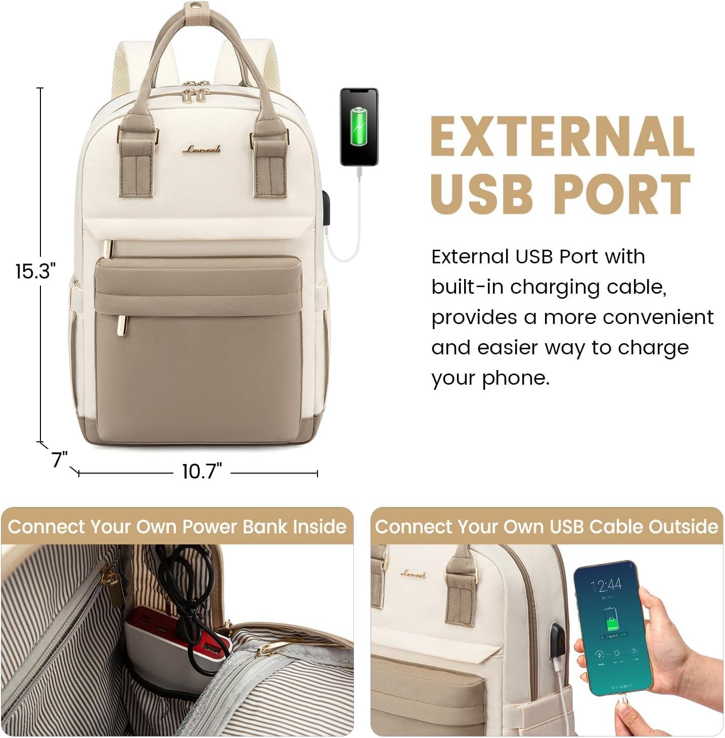 imageLOVEVOOK Mini Backpack for Women Stylish Waterproof Backpack Purse with USB Port Cute Bookbag for College School TravelKhaki  Beigeseparate Laptop Compartment