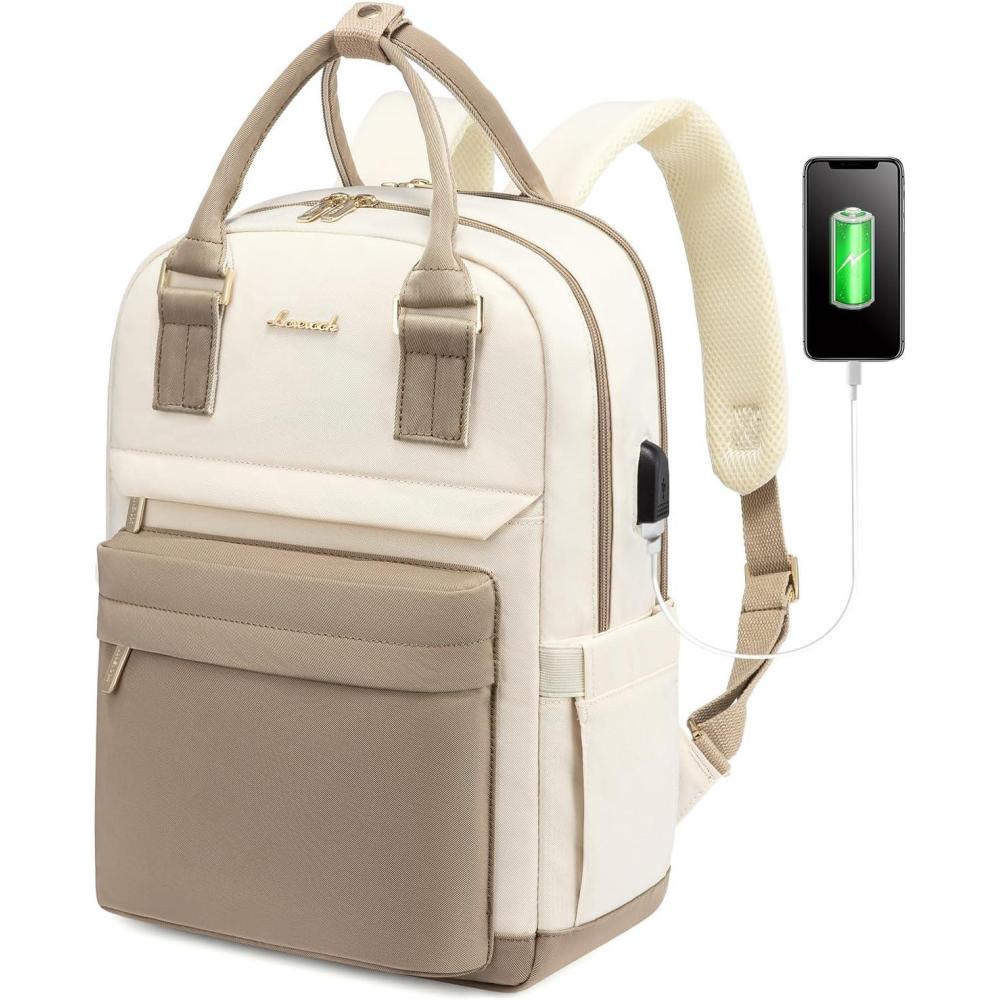LOVEVOOK Mini Backpack for Women Stylish Waterproof Backpack Purse with USB Port, Cute Bookbag for College School Travel(Khaki & Beige(separate Laptop Compartment))
