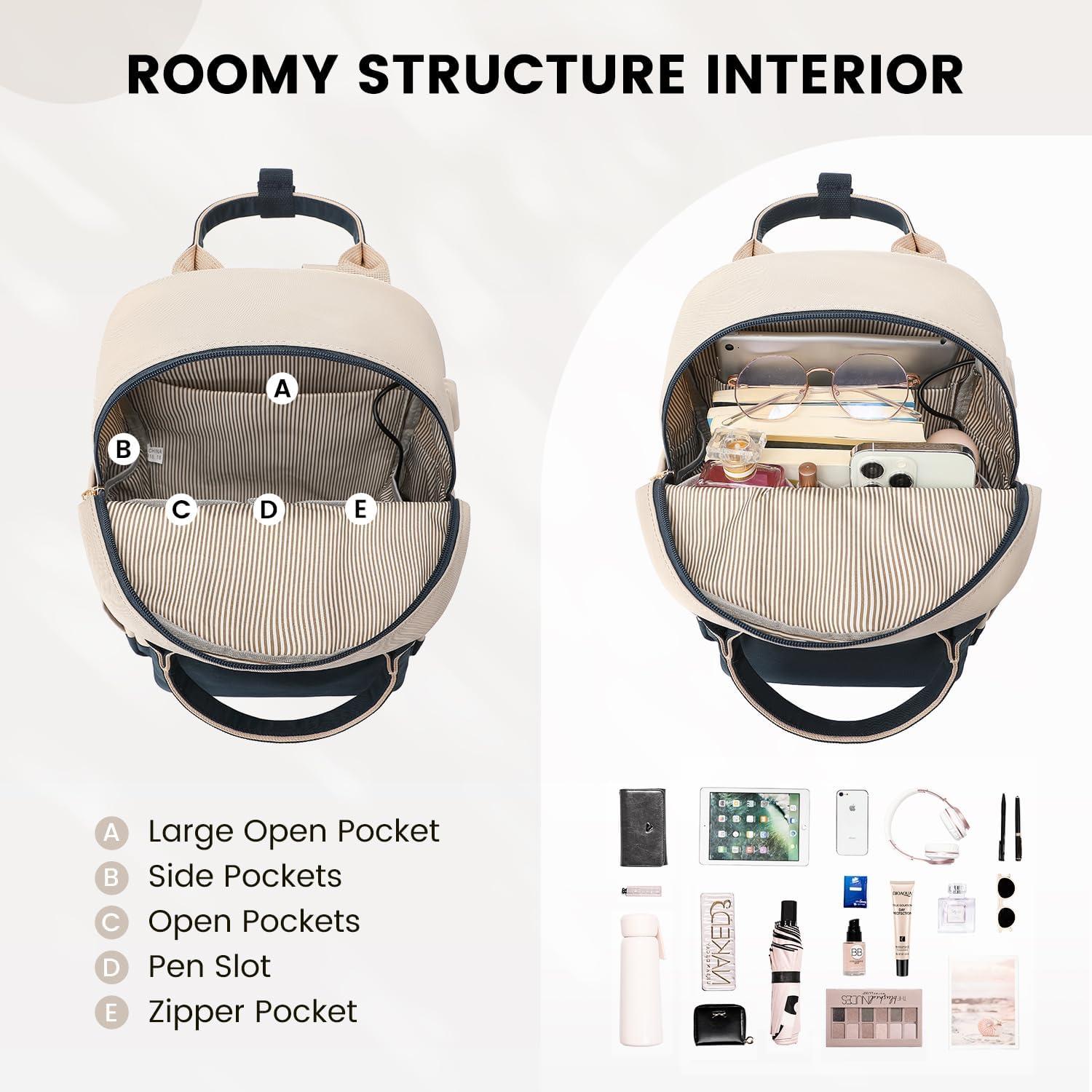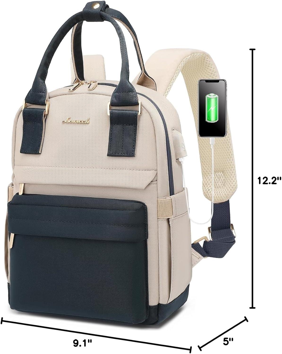 LOVEVOOK Mini Backpack for Women Stylish Waterproof Backpack Purse with USB Port, Cute Bookbag for College School Travel(Navy & Dark Apricot)