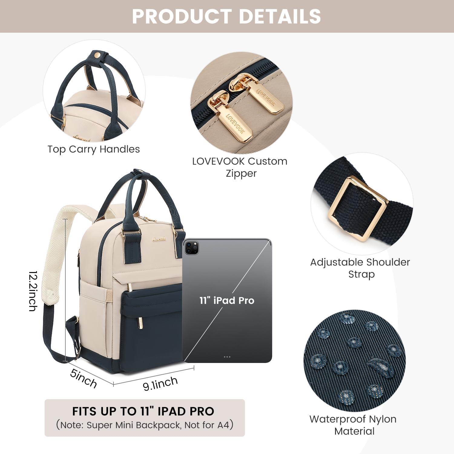 👍DURABLE & WATERPROOF👍 – This mini backpack made of high density nylon fabric and polyester lining, the treated material makes the backpack stronger and water resistant. Lightweight: 1.27lb. Size: 9.1″L * 12.2″H * 5″D (fits up to 11″ iPad Pro).