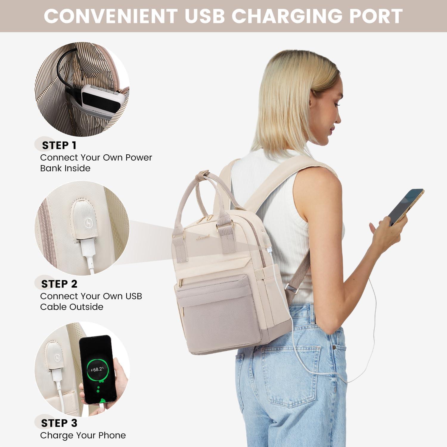 imageLOVEVOOK Mini Backpack for Women Stylish Waterproof Backpack Purse with USB Port Cute Bookbag for College School TravelNude  Beige