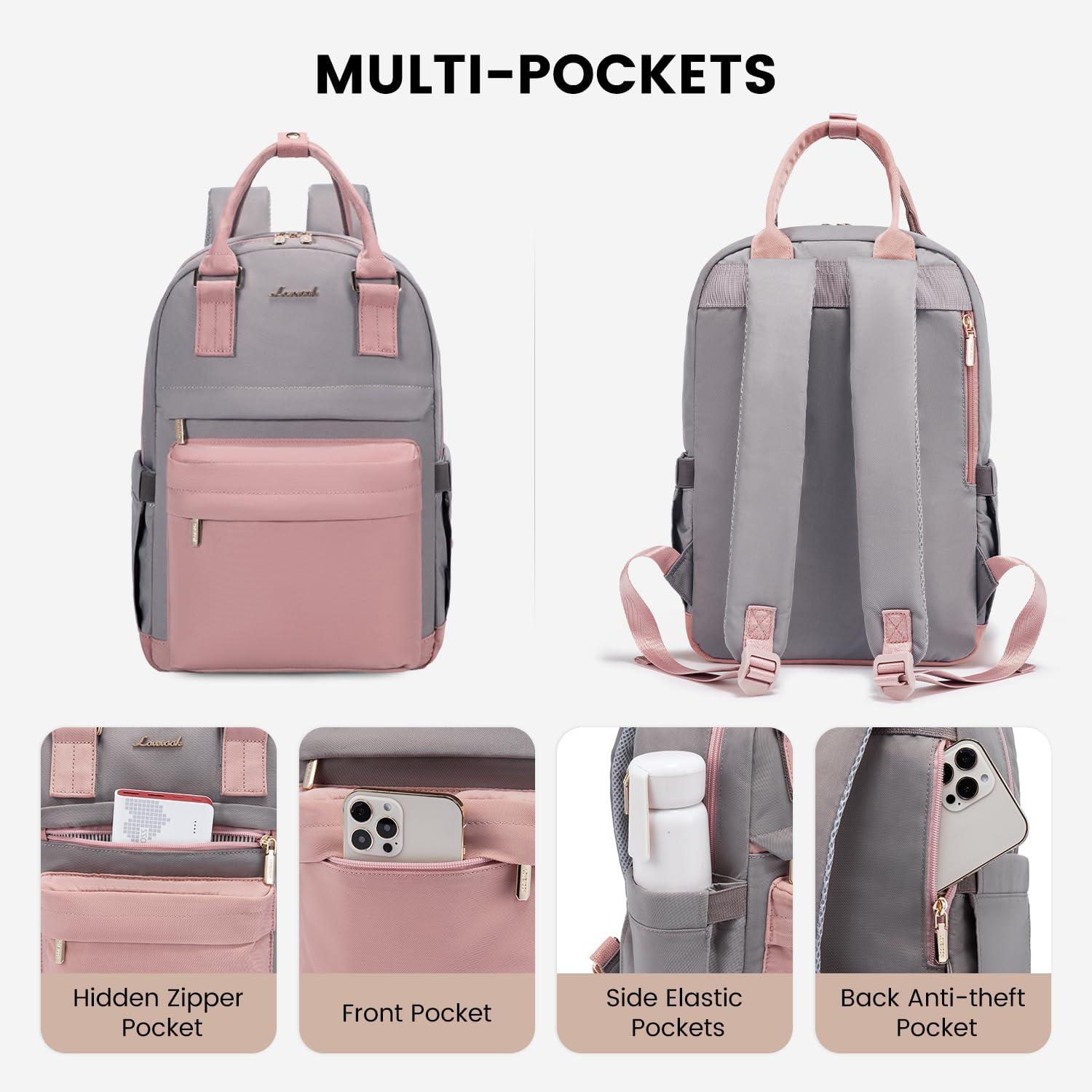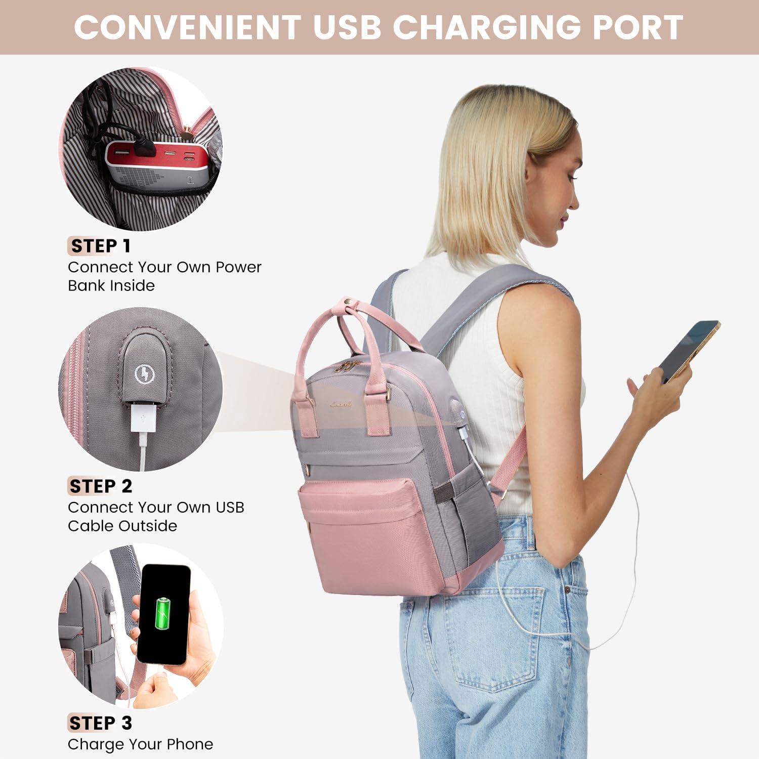 imageLOVEVOOK Mini Backpack for Women Stylish Waterproof Backpack Purse with USB Port Cute Bookbag for College School TravelPink  Grey