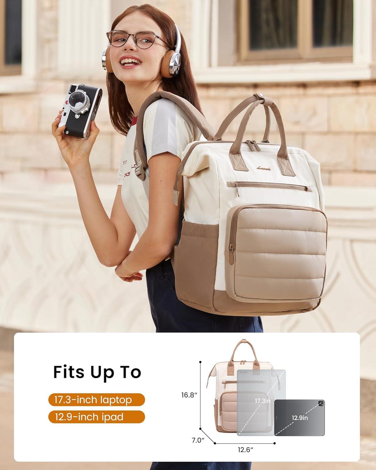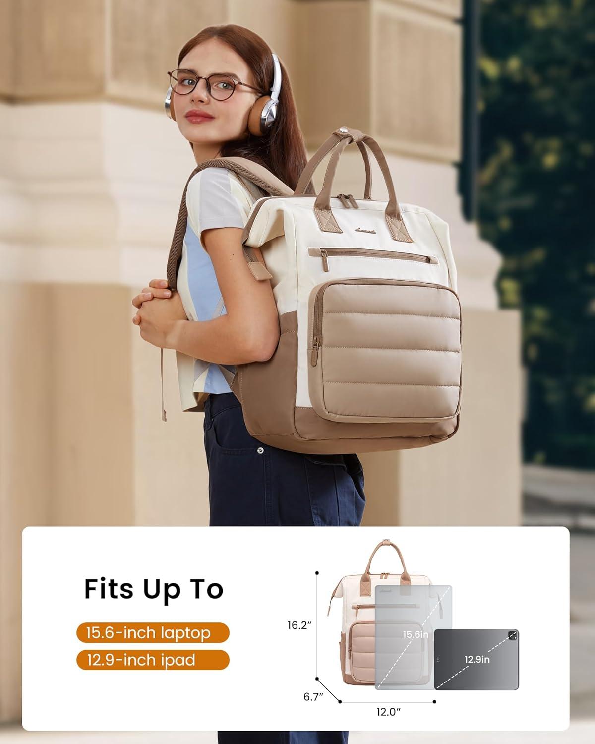 imageLOVEVOOK Puffer Laptop Backpack for Women 156 Inch Work Backpack purse for Nurse Teacher College Back to School Bookbag for Teen Girls Personal Item Travel Bag Computer Daypack for Daily CommuteBeigekhaki