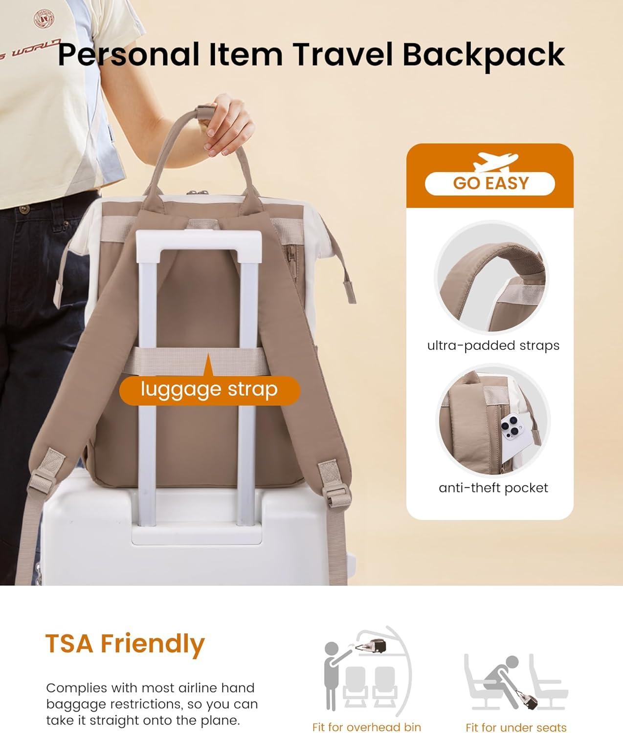 【Commuter & Travel Ready】The work backpack features a luggage strap, rear anti-theft pocket, and secure storage for wallet, passport, and phone—ideal for busy commutes and travel
