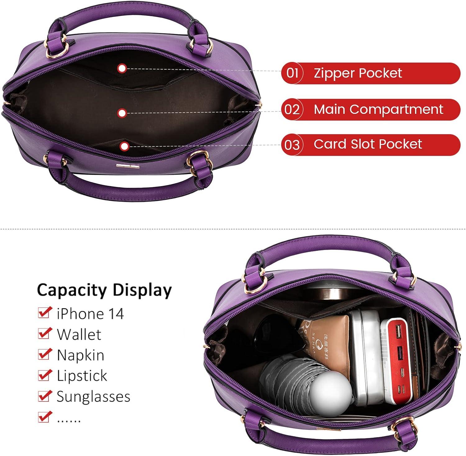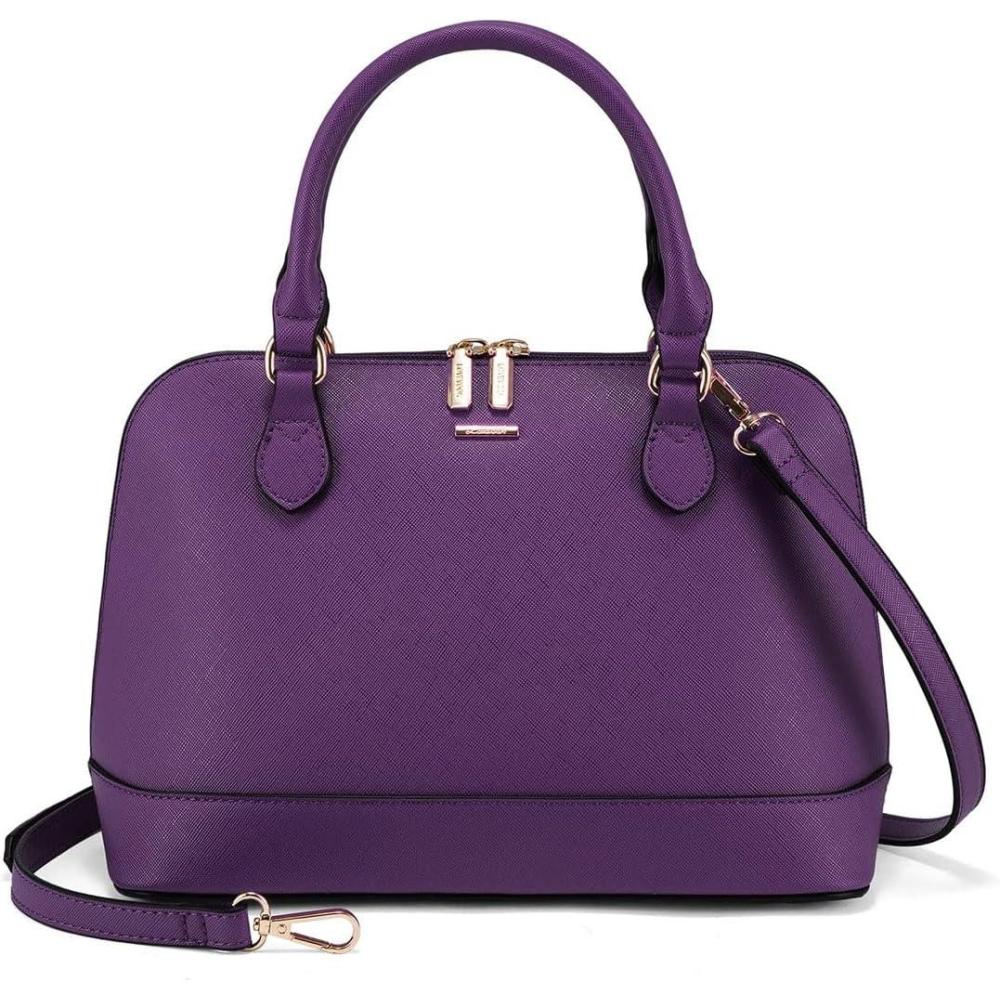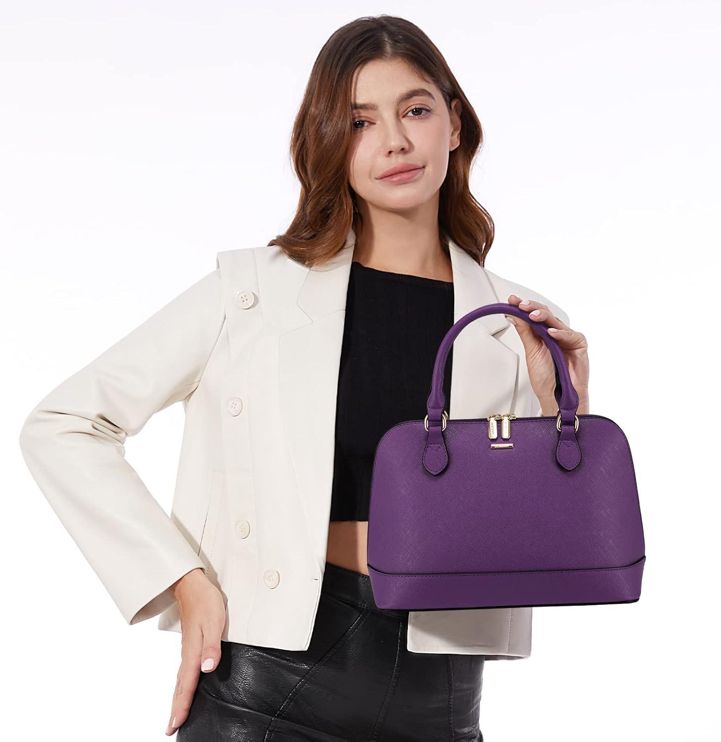 LOVEVOOK Purse for Women Small Crossbody Bags Classic Double Zip Top Handle Dome Satchel Bag(Large-purple)
