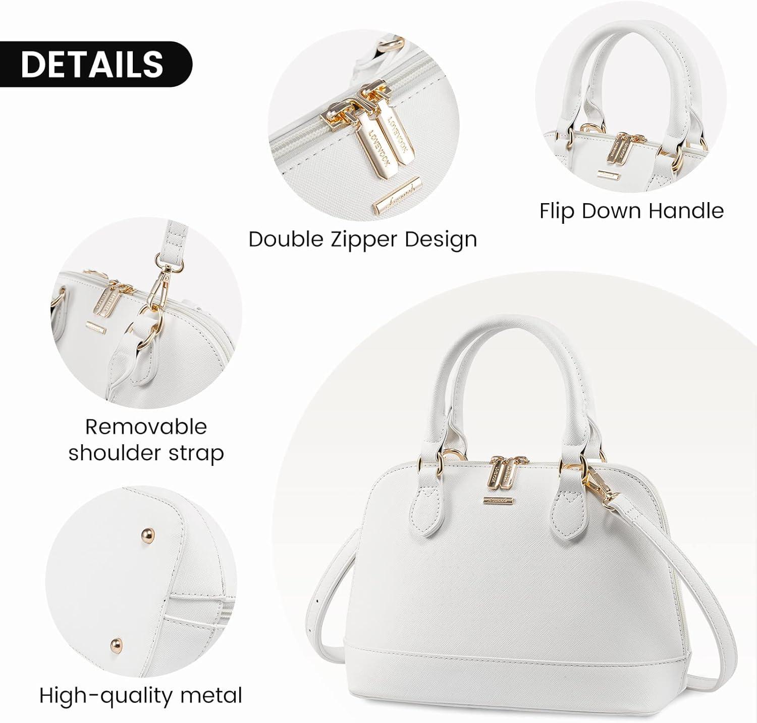 LOVEVOOK Purse for Women Small Crossbody Bags Classic Double Zip Top Handle Dome Satchel Bag(White)