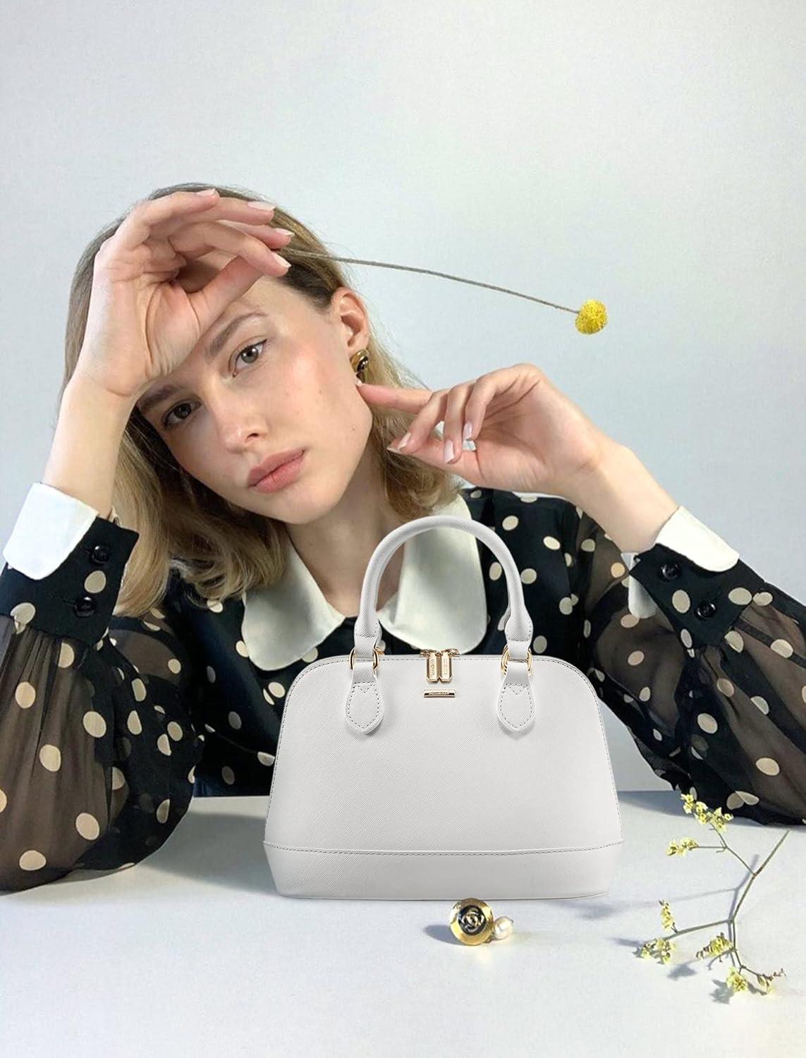 imageLOVEVOOK Purse for Women Small Crossbody Bags Classic Double Zip Top Handle Dome Satchel BagWhite