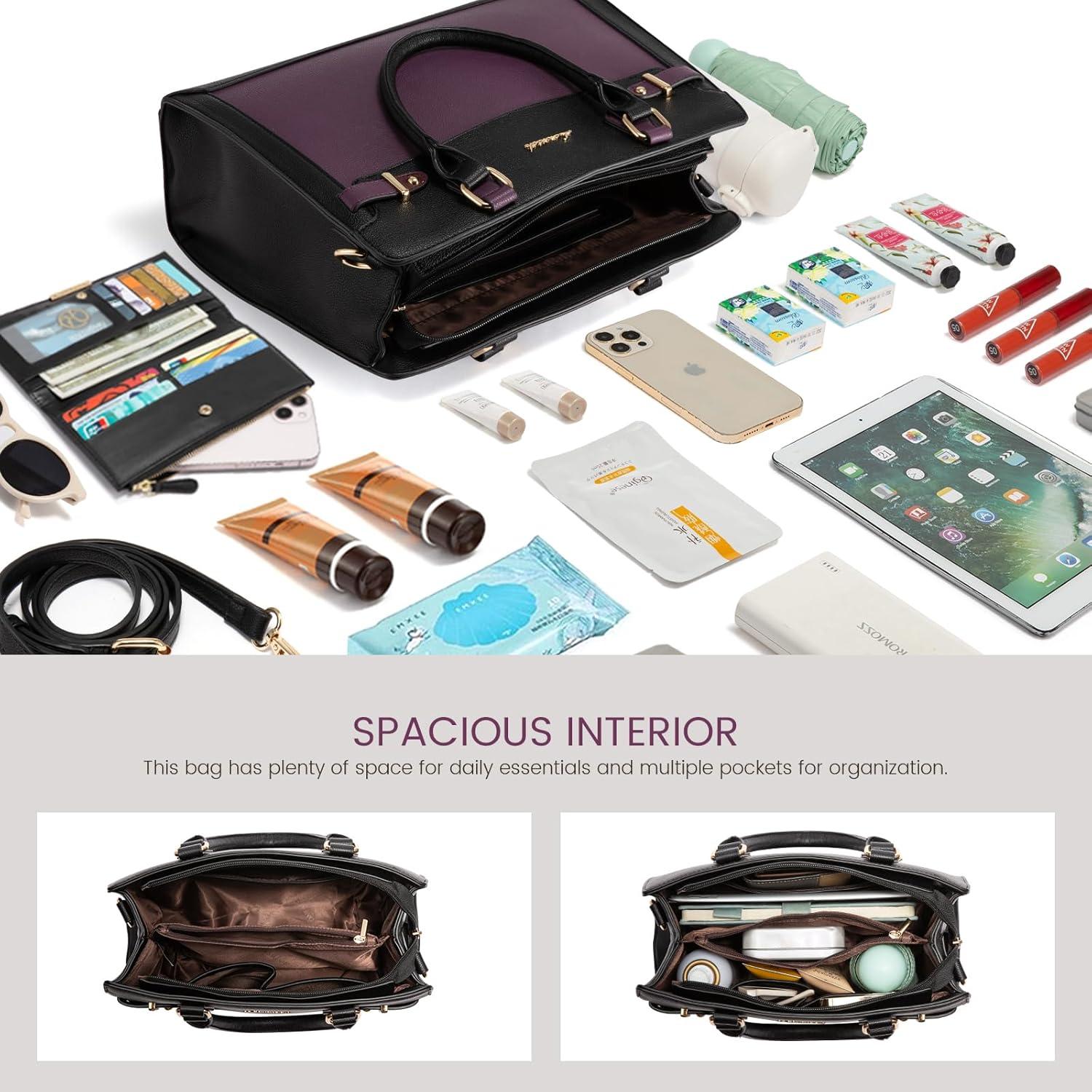 LOVEVOOK Purses and Handbags for Women, Tote Shoulder Bag Satchel Black Purse and PU Leather Top Handle for ladies(Black-purple)