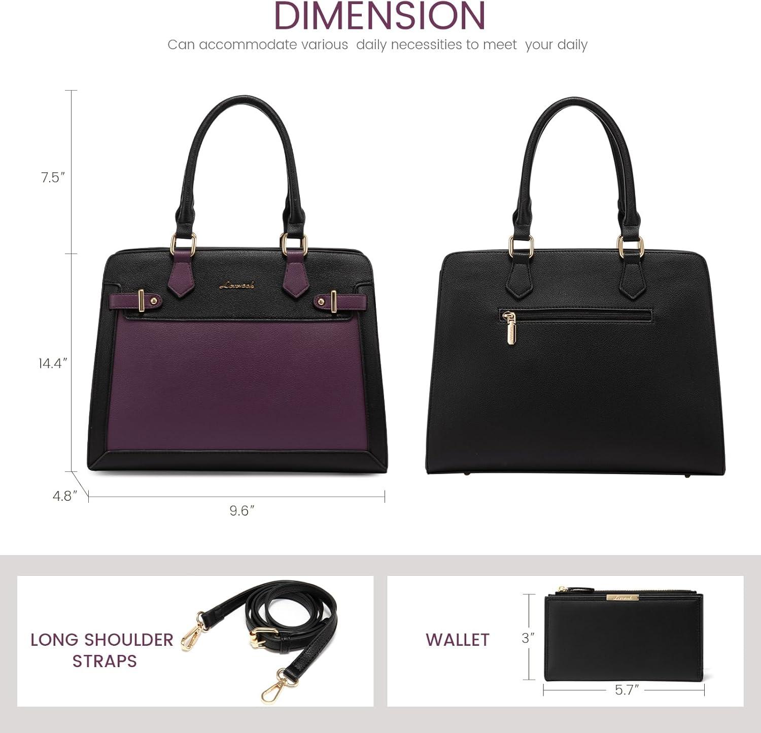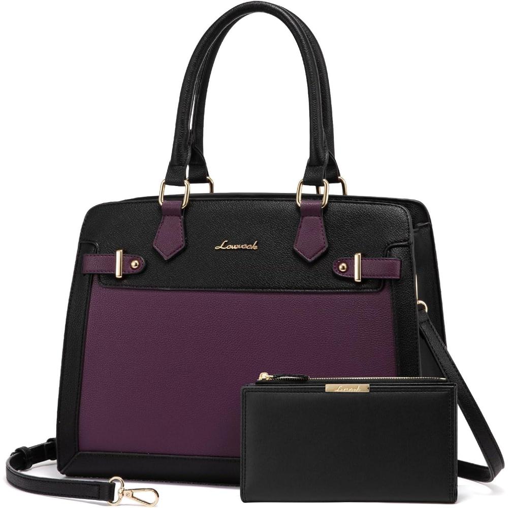 imageLOVEVOOK Purses and Handbags for Women Tote Shoulder Bag Satchel Black Purse and PU Leather Top Handle for ladiesBlackpurple