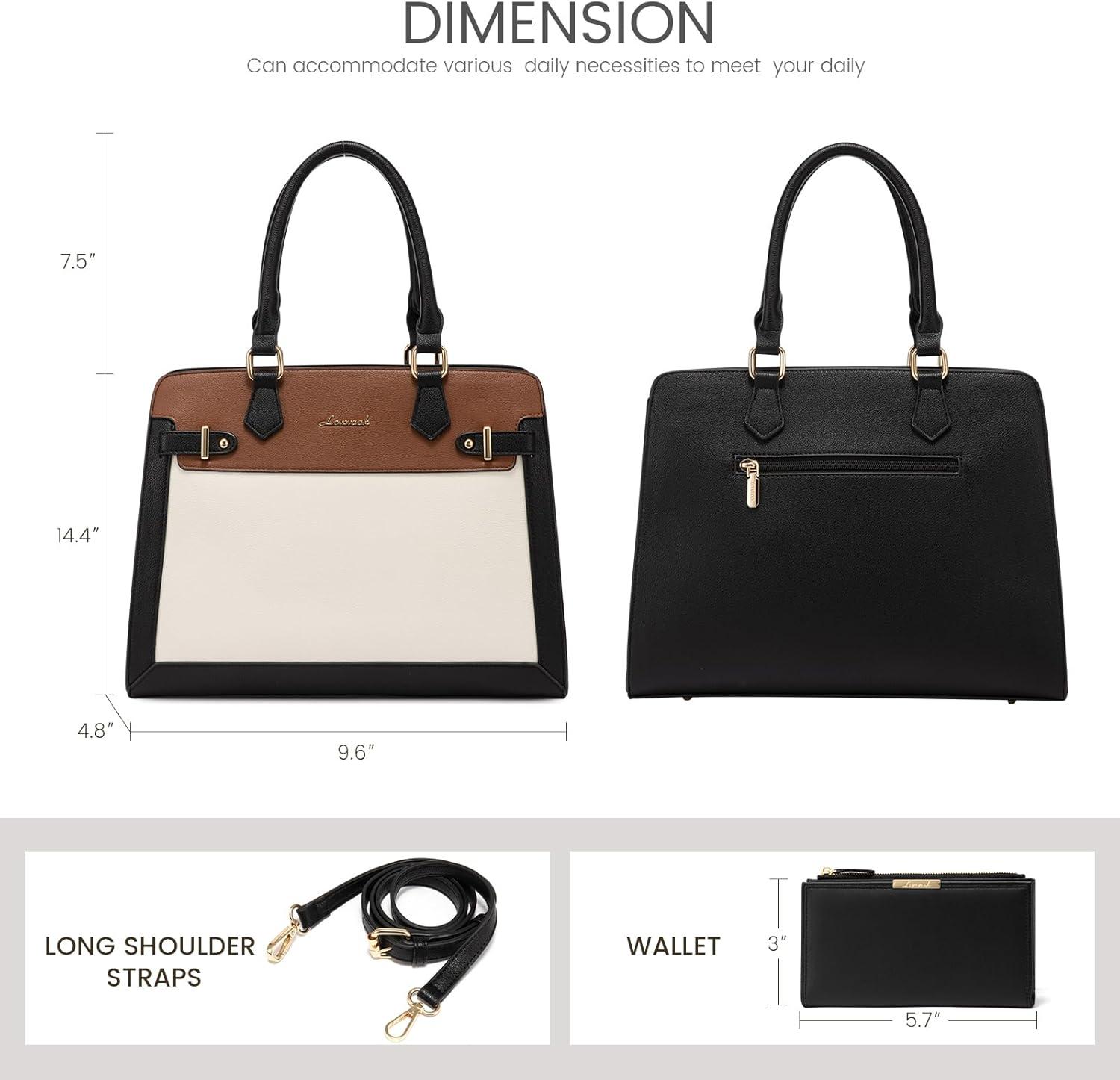 LOVEVOOK Purses and Handbags for Women, Tote Shoulder Bag Satchel Black Purse and PU Leather Top Handle for ladies(Black-white-brown)