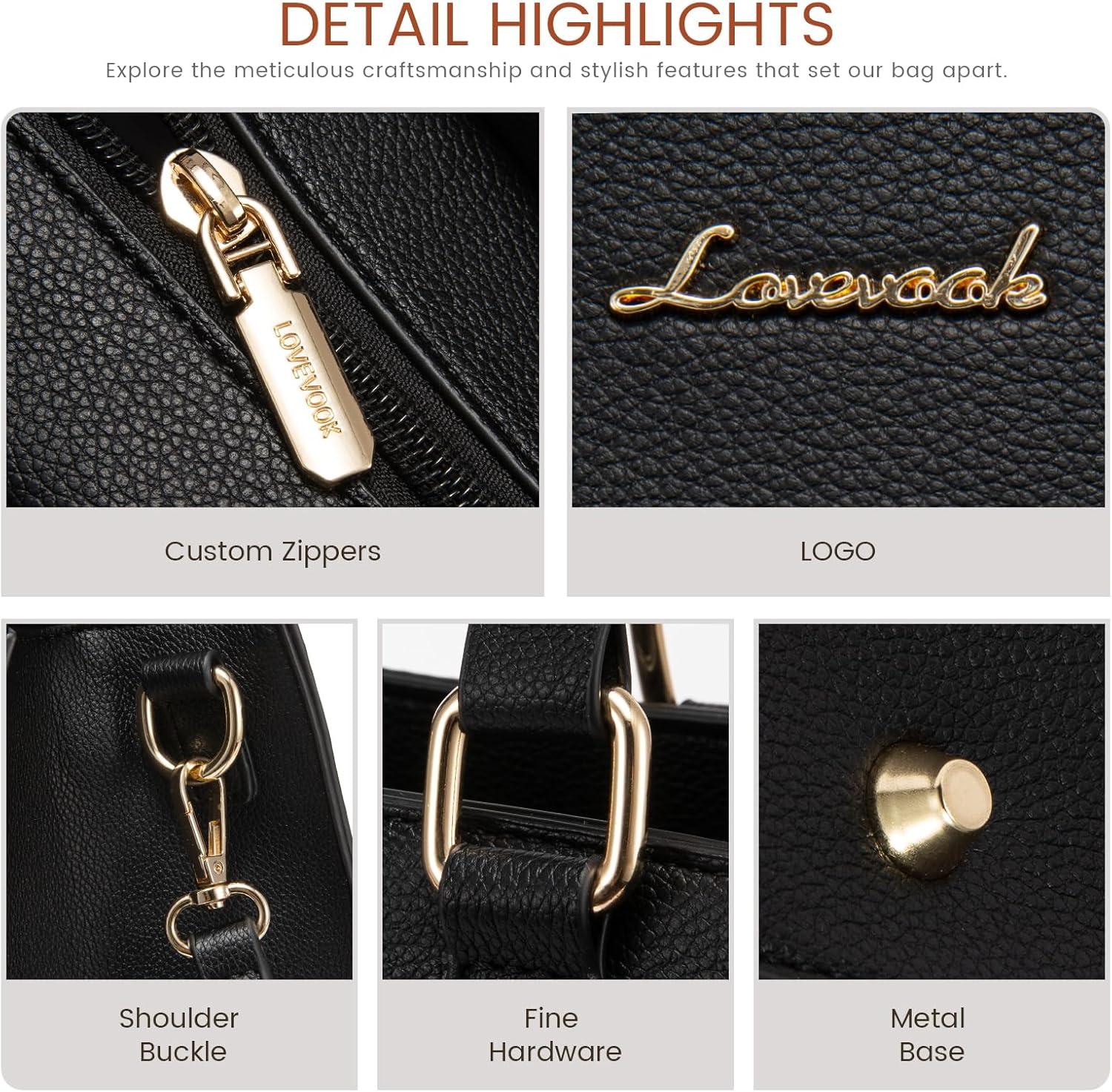 imageLOVEVOOK Purses and Handbags for Women Tote Shoulder Bag Satchel Black Purse and PU Leather Top Handle for ladiesBlack