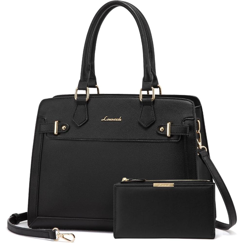 LOVEVOOK Purses and Handbags for Women, Tote Shoulder Bag Satchel Black Purse and PU Leather Top Handle for ladies(Black)