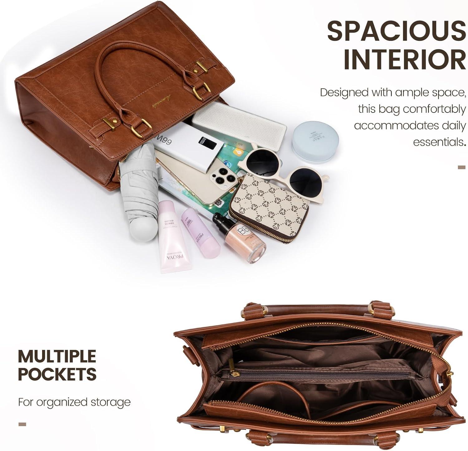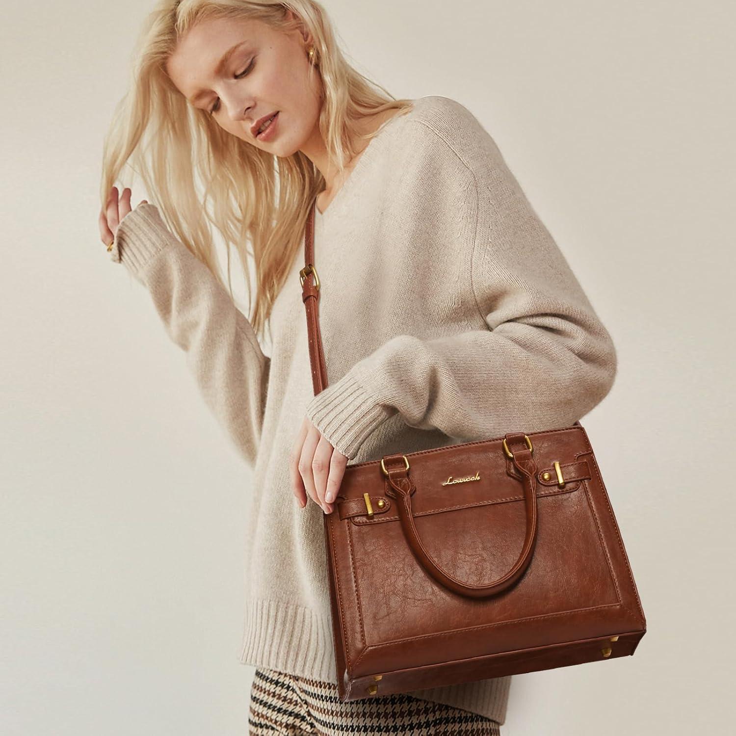 LOVEVOOK Purses and Handbags for Women, Tote Shoulder Bag Satchel Black Purse and PU Leather Top Handle for ladies(Brown-s)