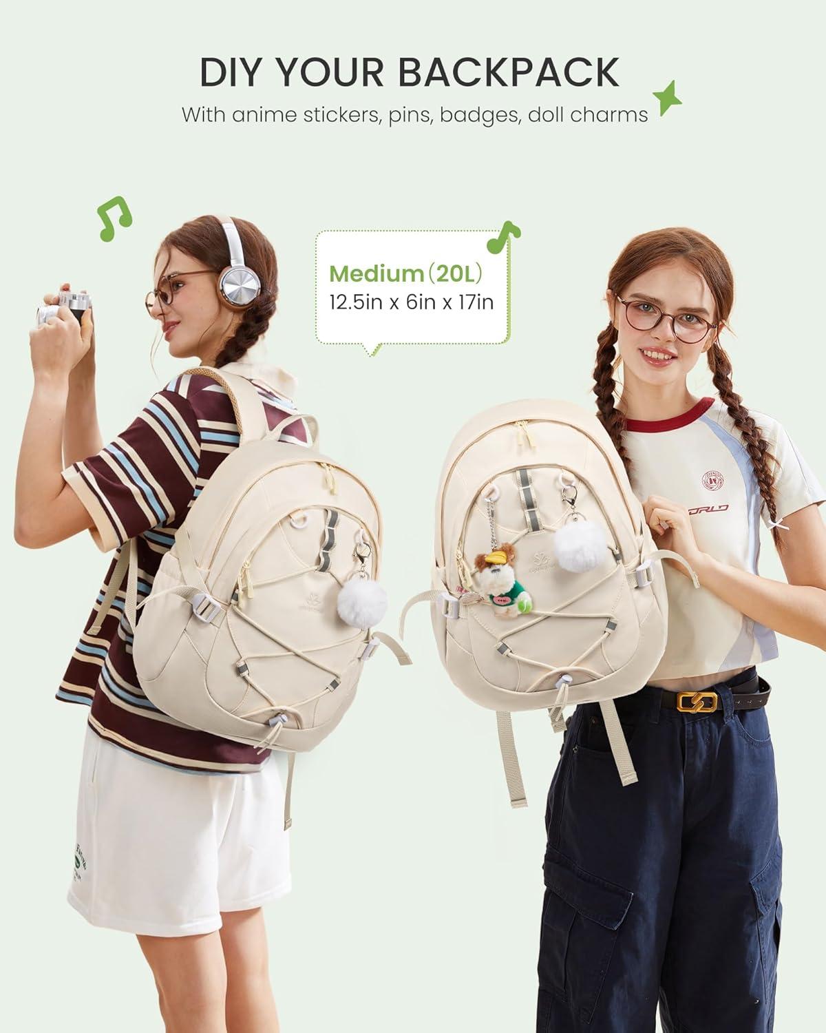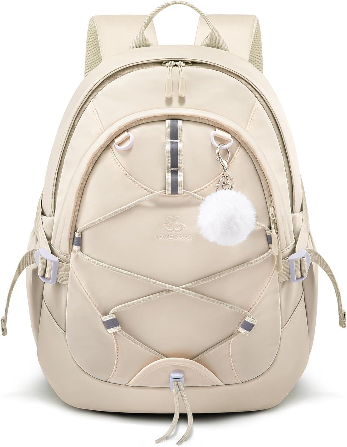 LOVEVOOK School Backpack for Teen Girls, Waterproof Student Backpack Purse, Cute Kid Bookbag with Chest Strap, Back to School Backpacks Fit 15.6 Inch Laptop, College Travel Back Pack Casual Daypack(Beige)