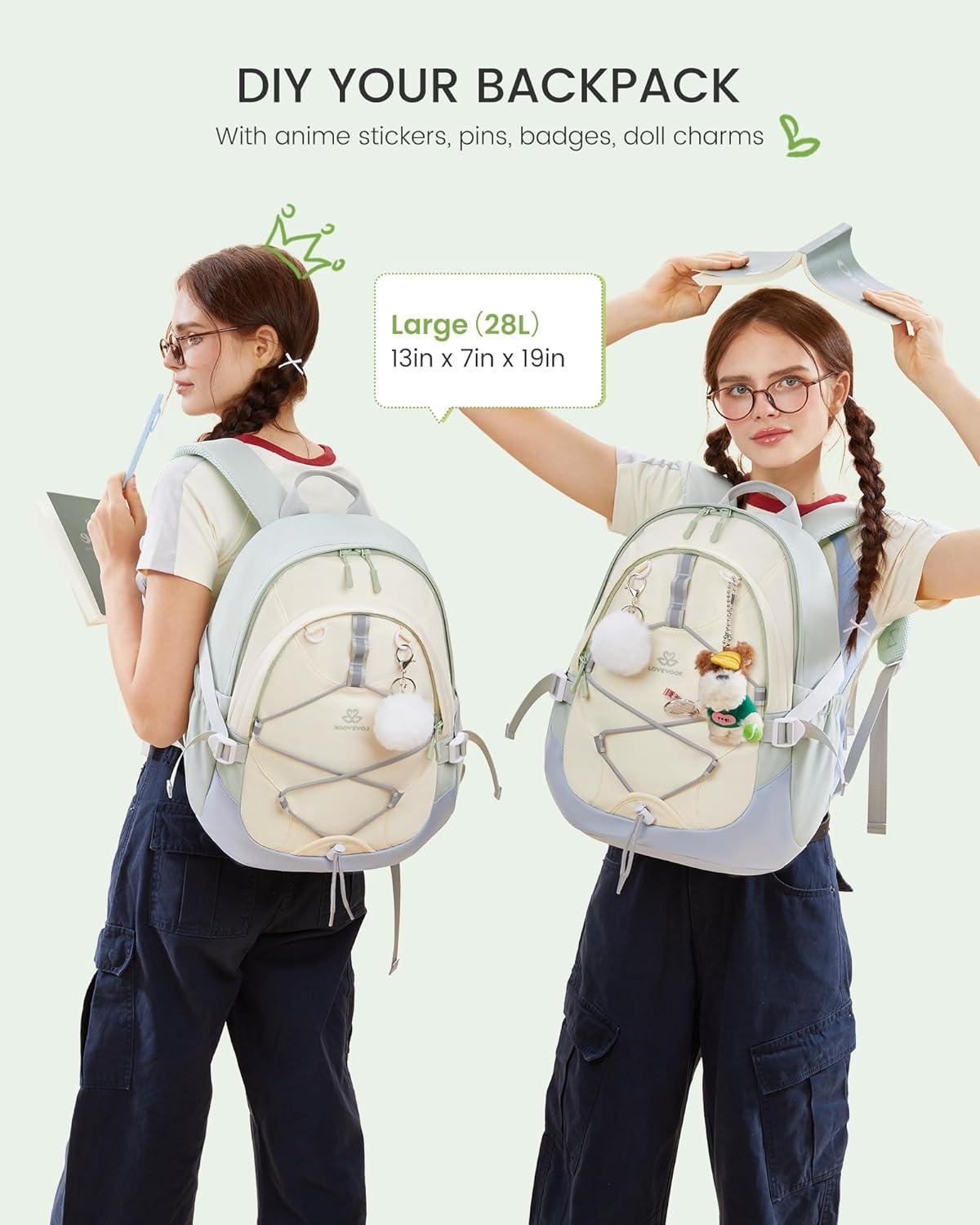 【Lightweight & Durable】At just 1.36 lbs (like carrying two smartphones!), LOVEVOOK backpack for teen girls delivers lasting comfort. Made with waterproof, abrasion-resistant polyester, it safeguards belongings while standing up to daily adventures