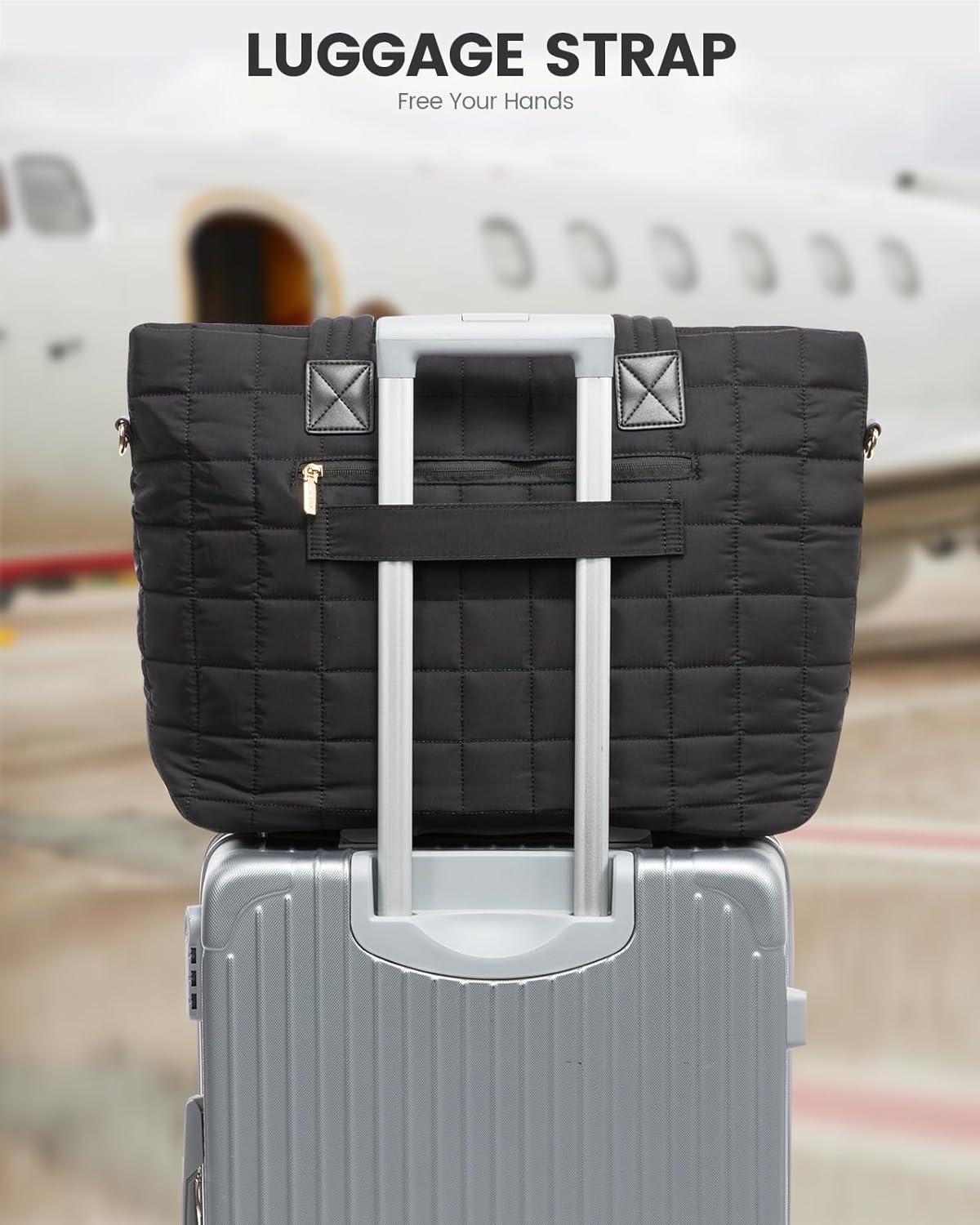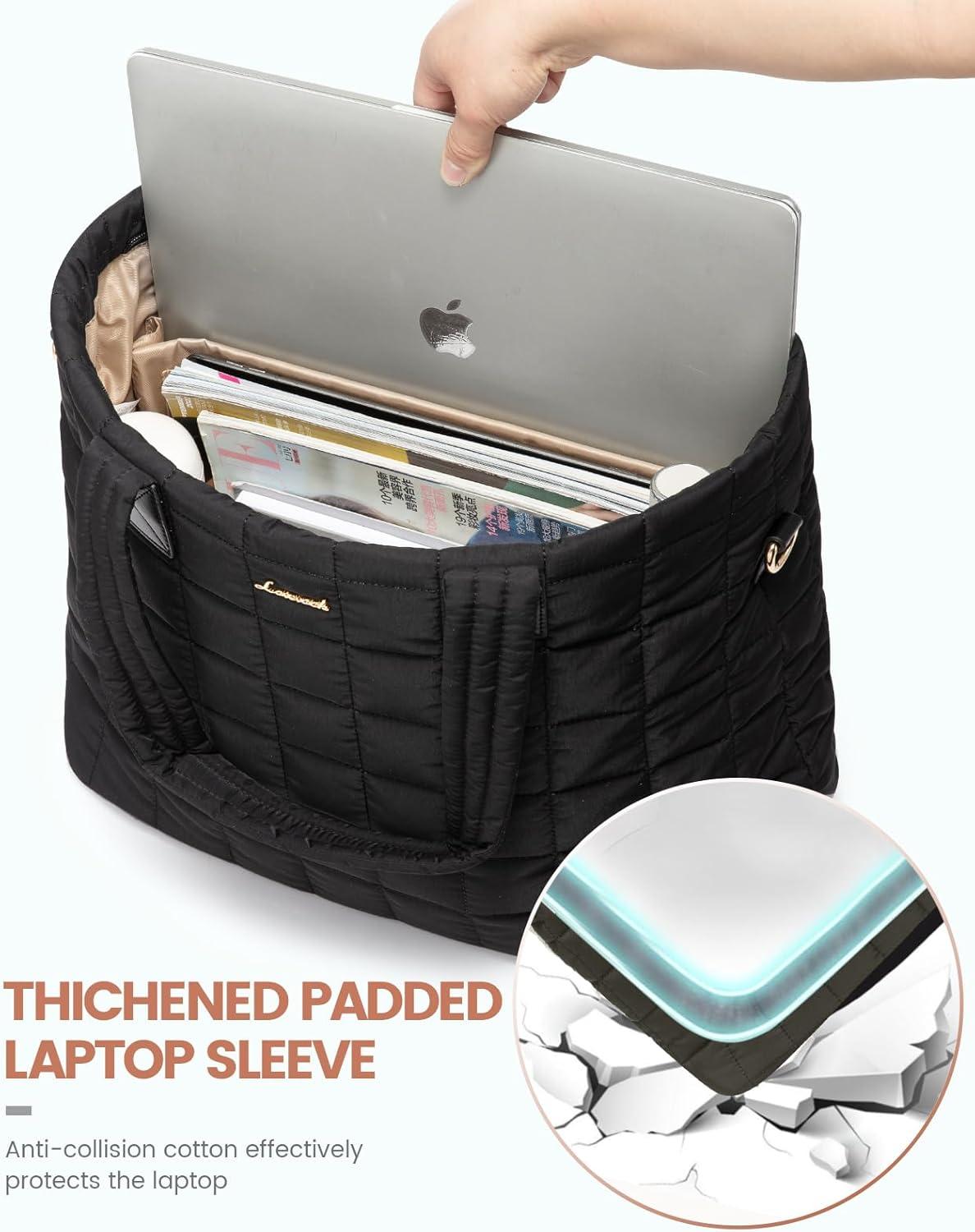 imageLOVEVOOK Tote Bag for Women Large Puffer Tote Bag with Zipper Quilted Light Work BagBlack