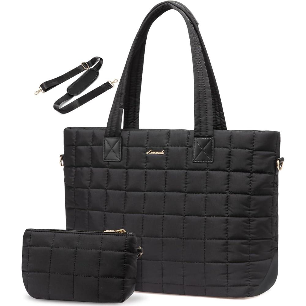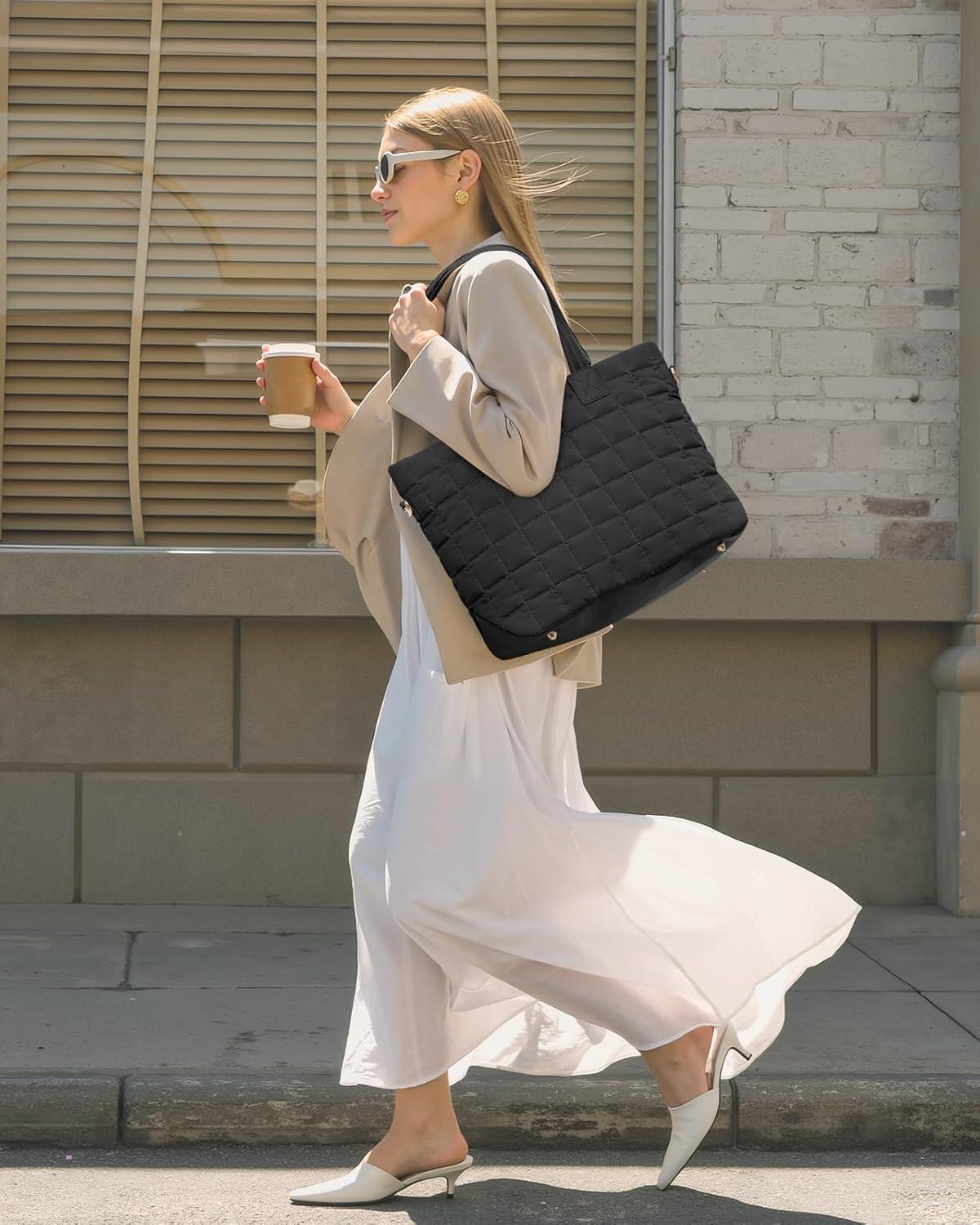 LOVEVOOK Tote Bag for Women, Large Puffer Tote Bag with Zipper Quilted Light Work Bag(Black)