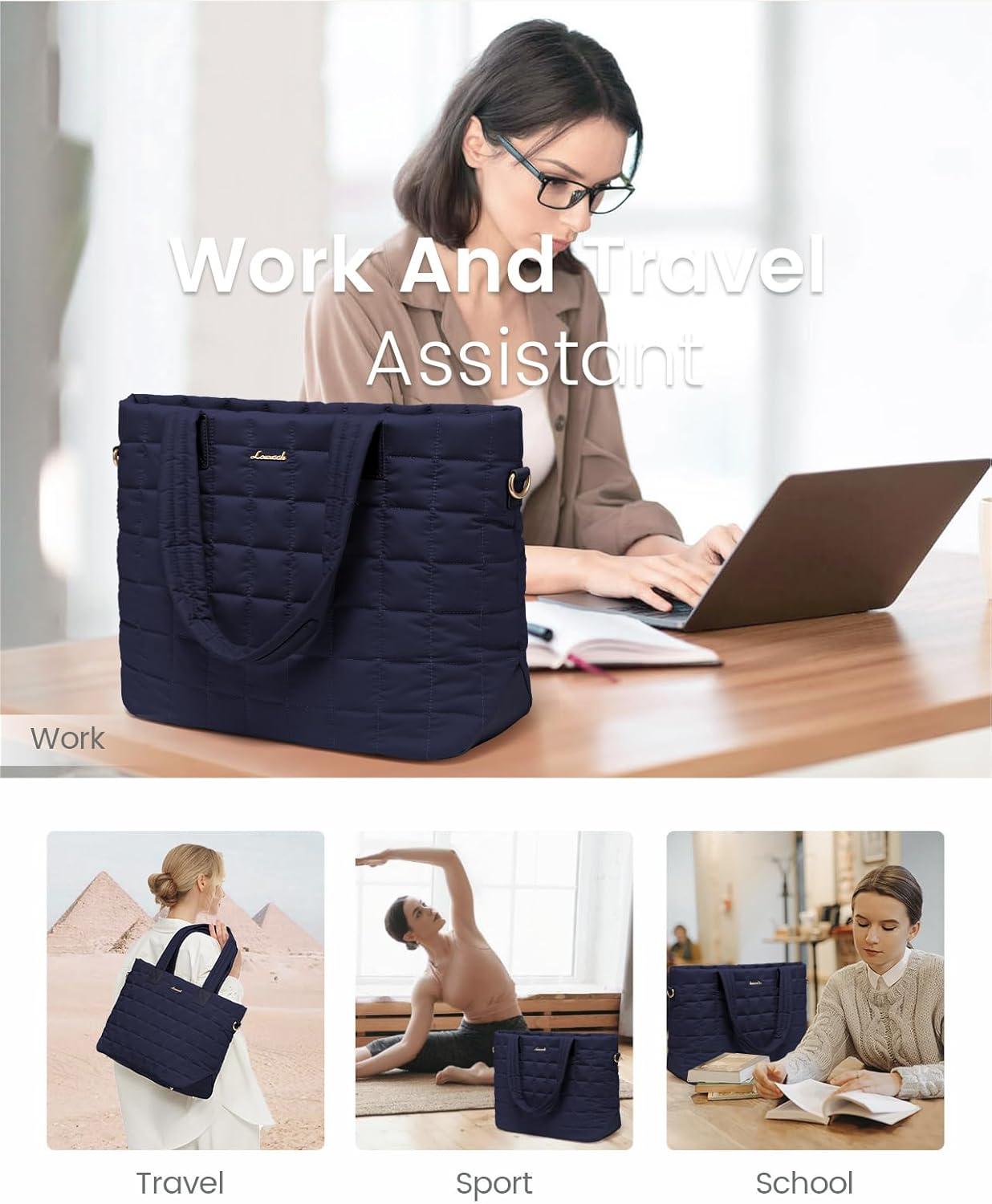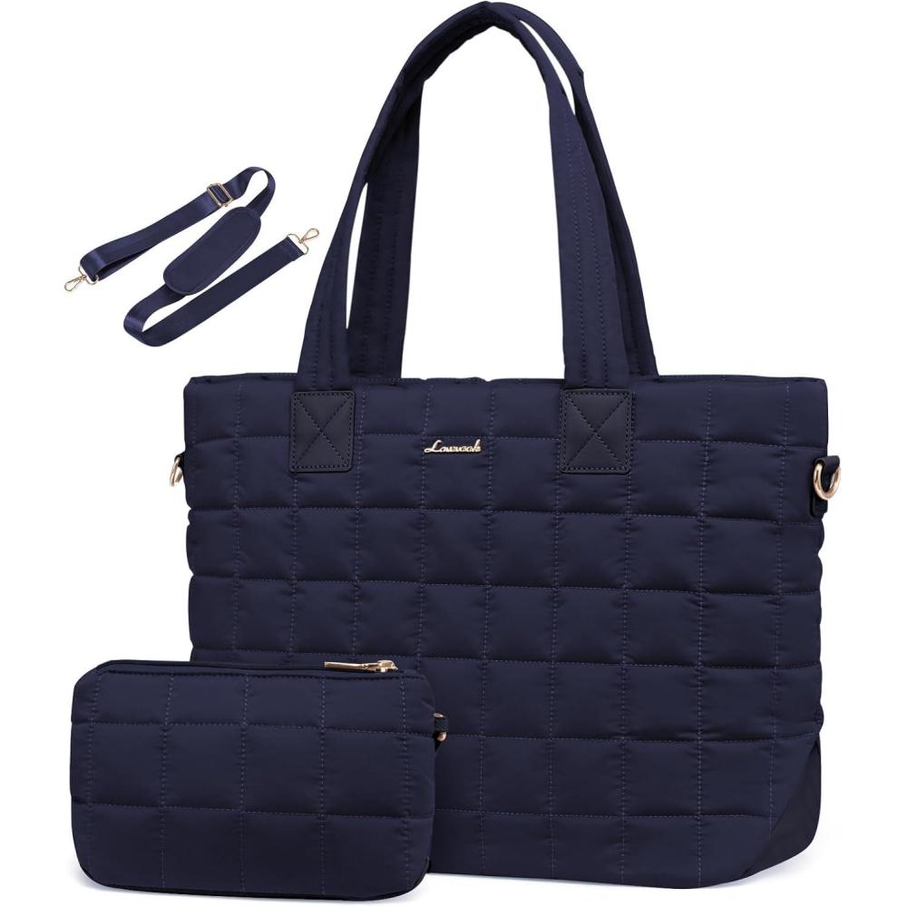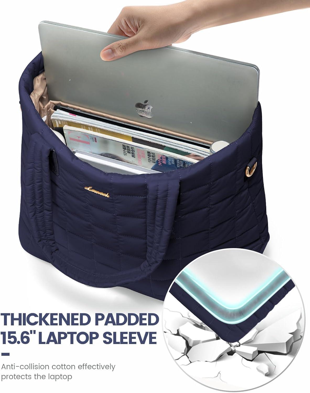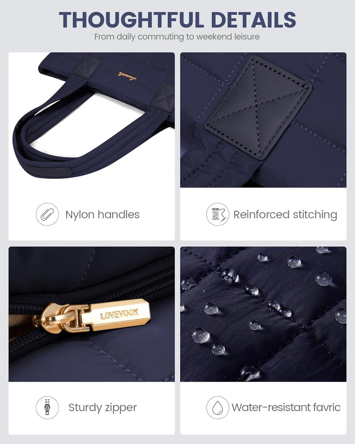 imageLOVEVOOK Tote Bag for Women Large Puffer Tote Bag with Zipper Quilted Light Work BagBlue