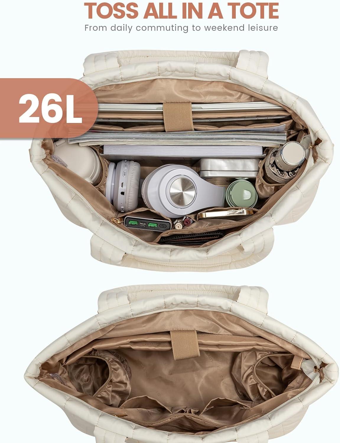 LOVEVOOK Tote Bag for Women, Large Puffer Tote Bag with Zipper Quilted Light Work Bag(Sandy)