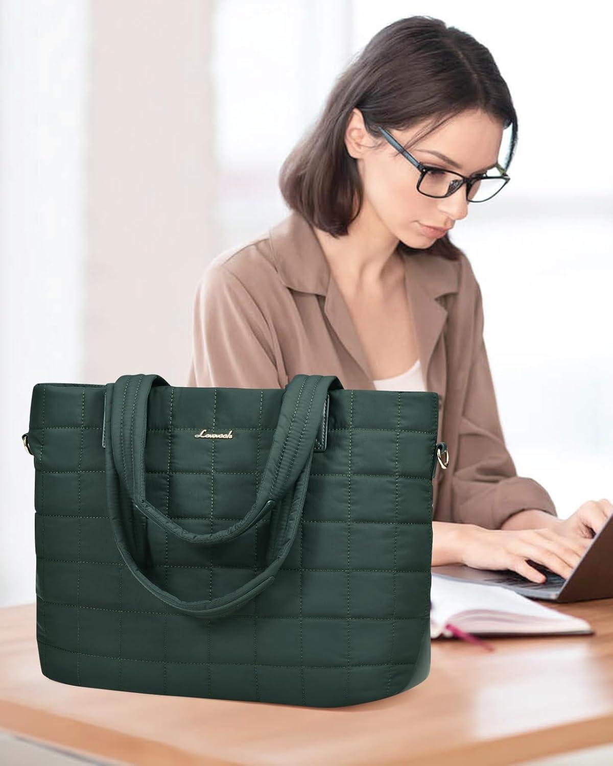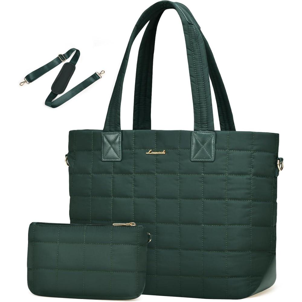 LOVEVOOK Tote Bag for Women, Large Puffer Tote Bag with Zipper Quilted Light Work Bag(Dark Green)