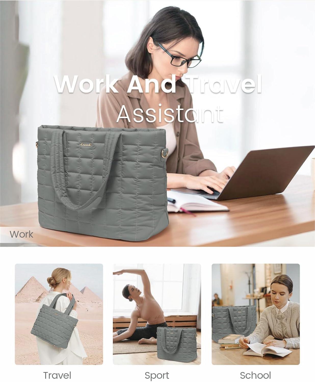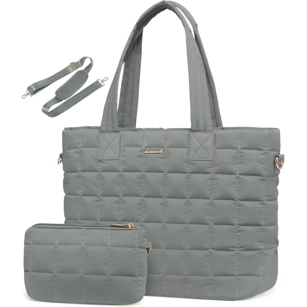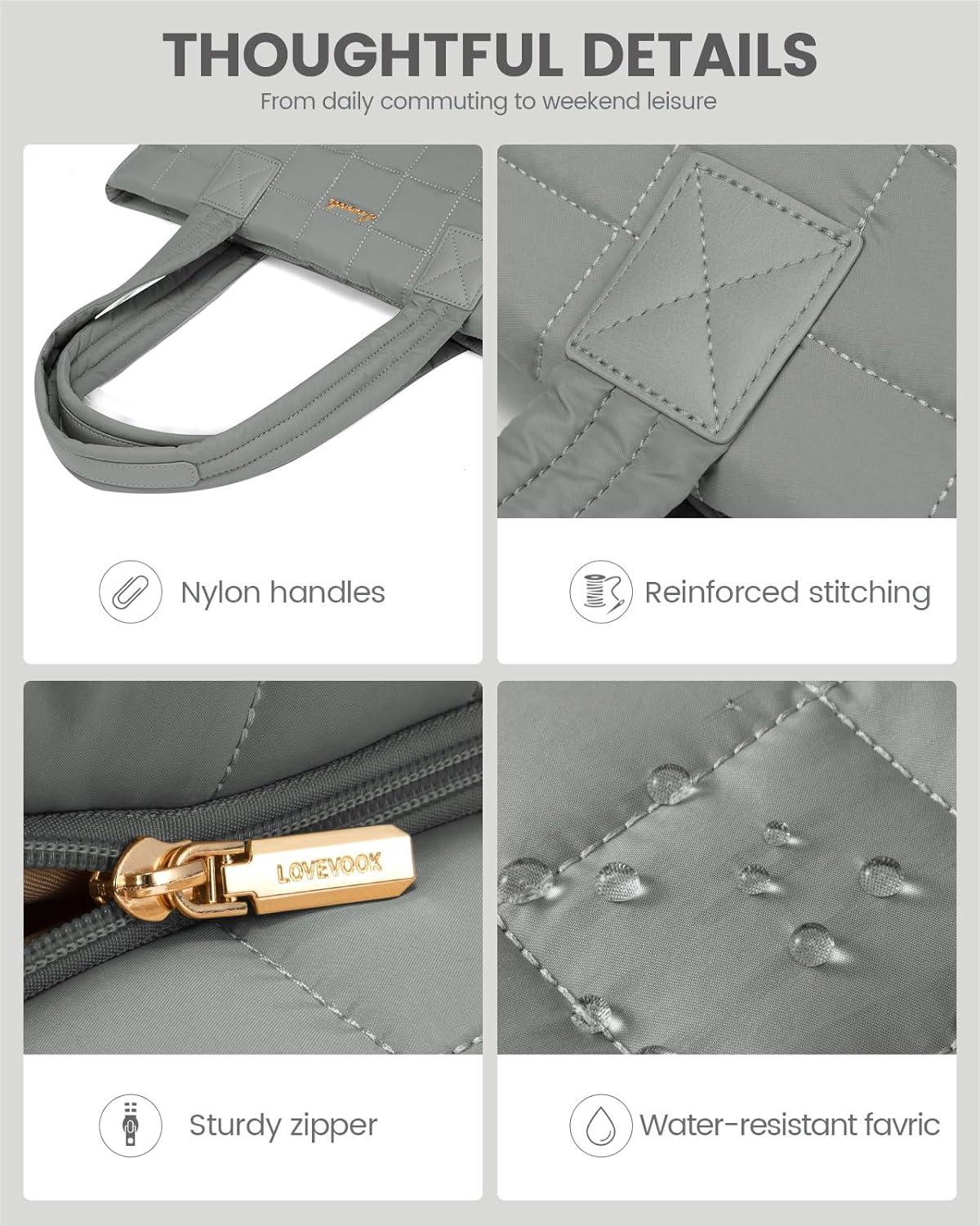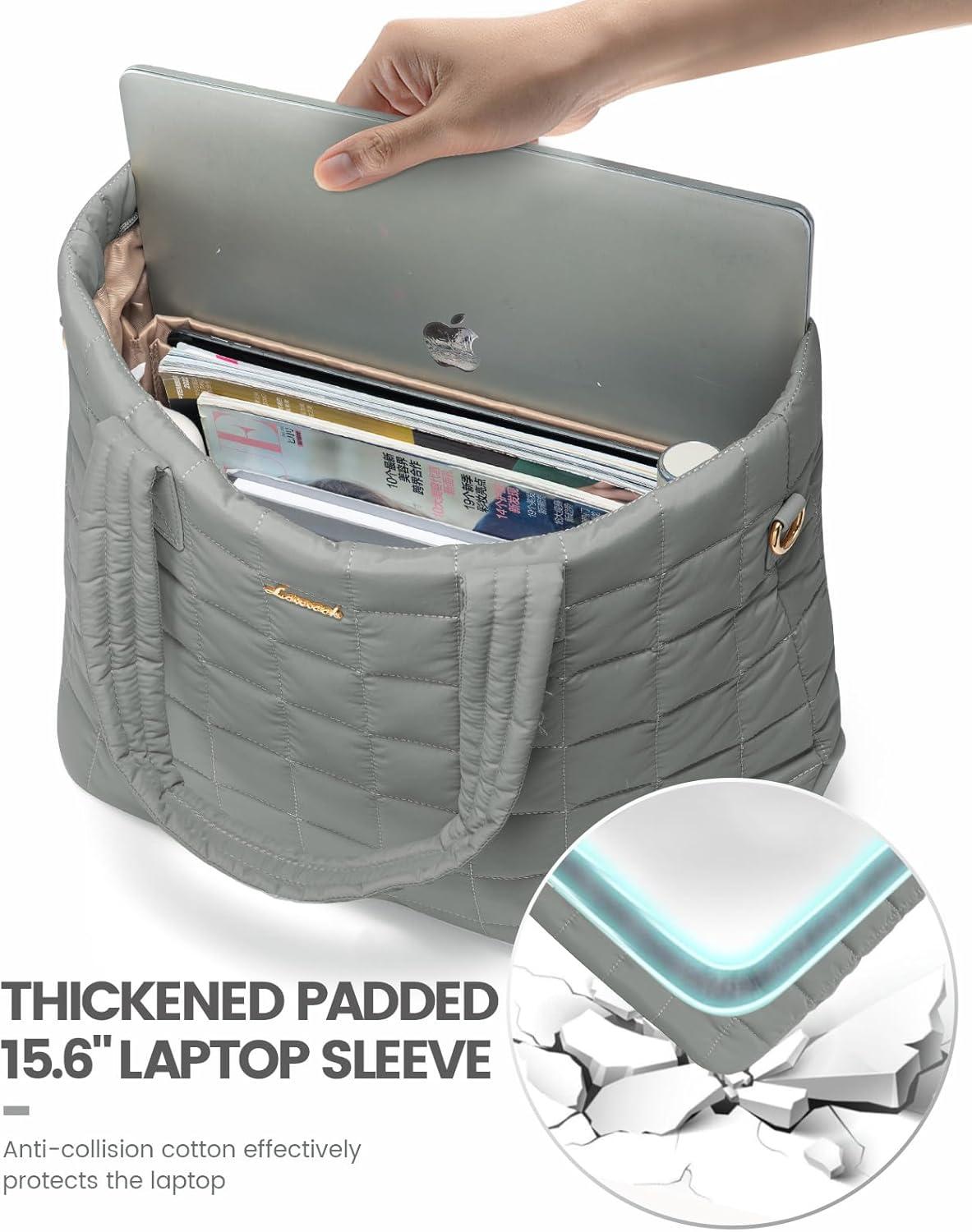 imageLOVEVOOK Tote Bag for Women Large Puffer Tote Bag with Zipper Quilted Light Work BagGreen