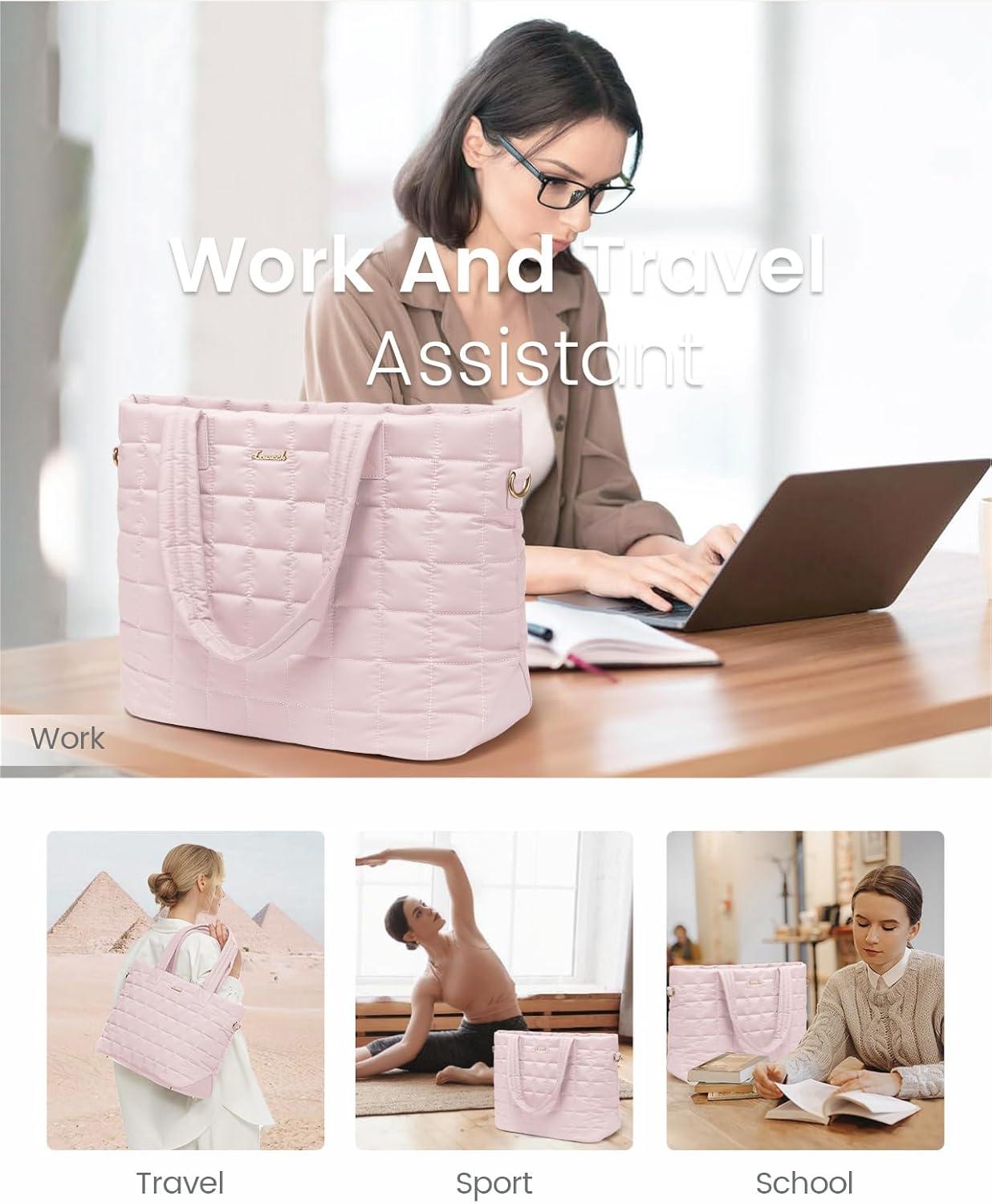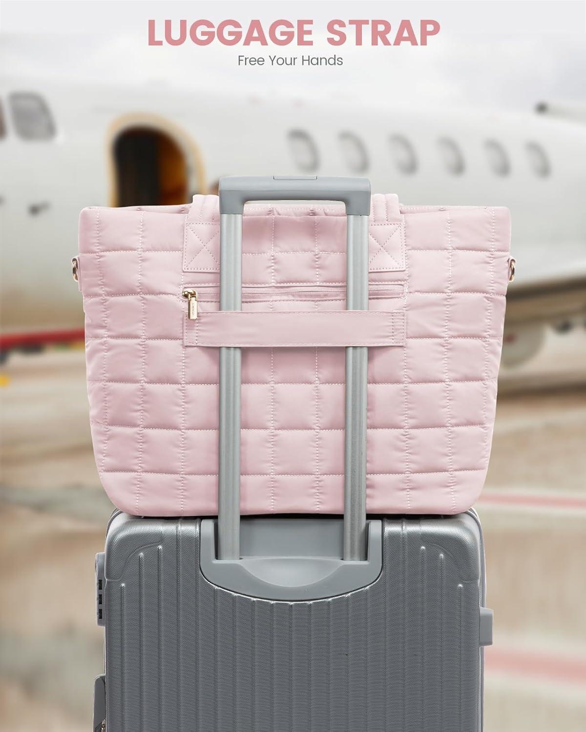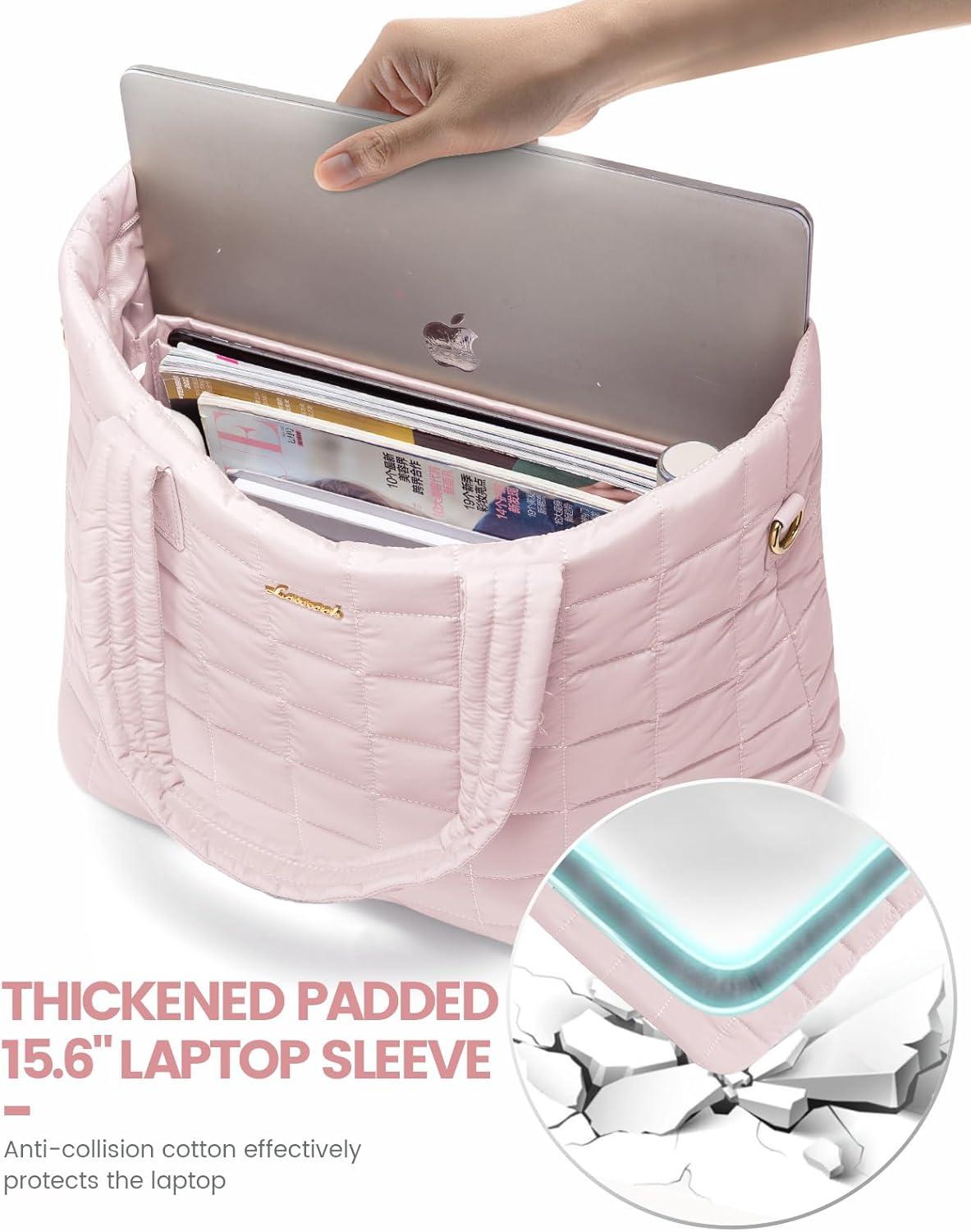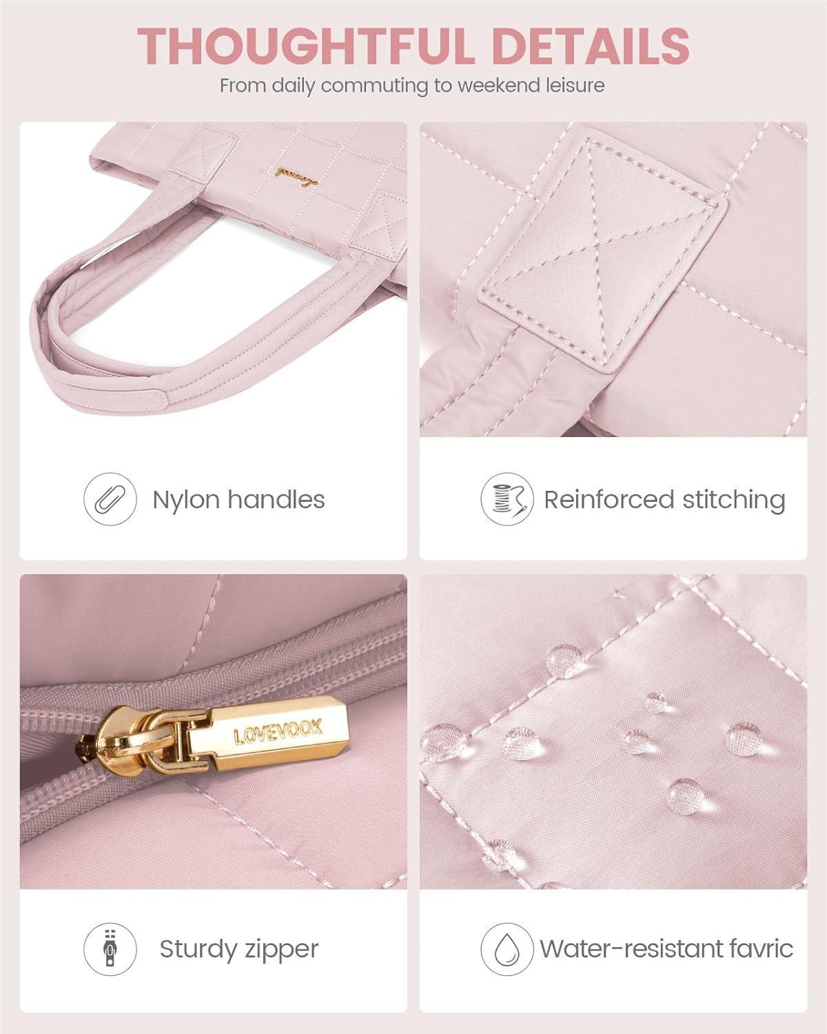 LOVEVOOK Tote Bag for Women, Large Puffer Tote Bag with Zipper Quilted Light Work Bag(Pink)