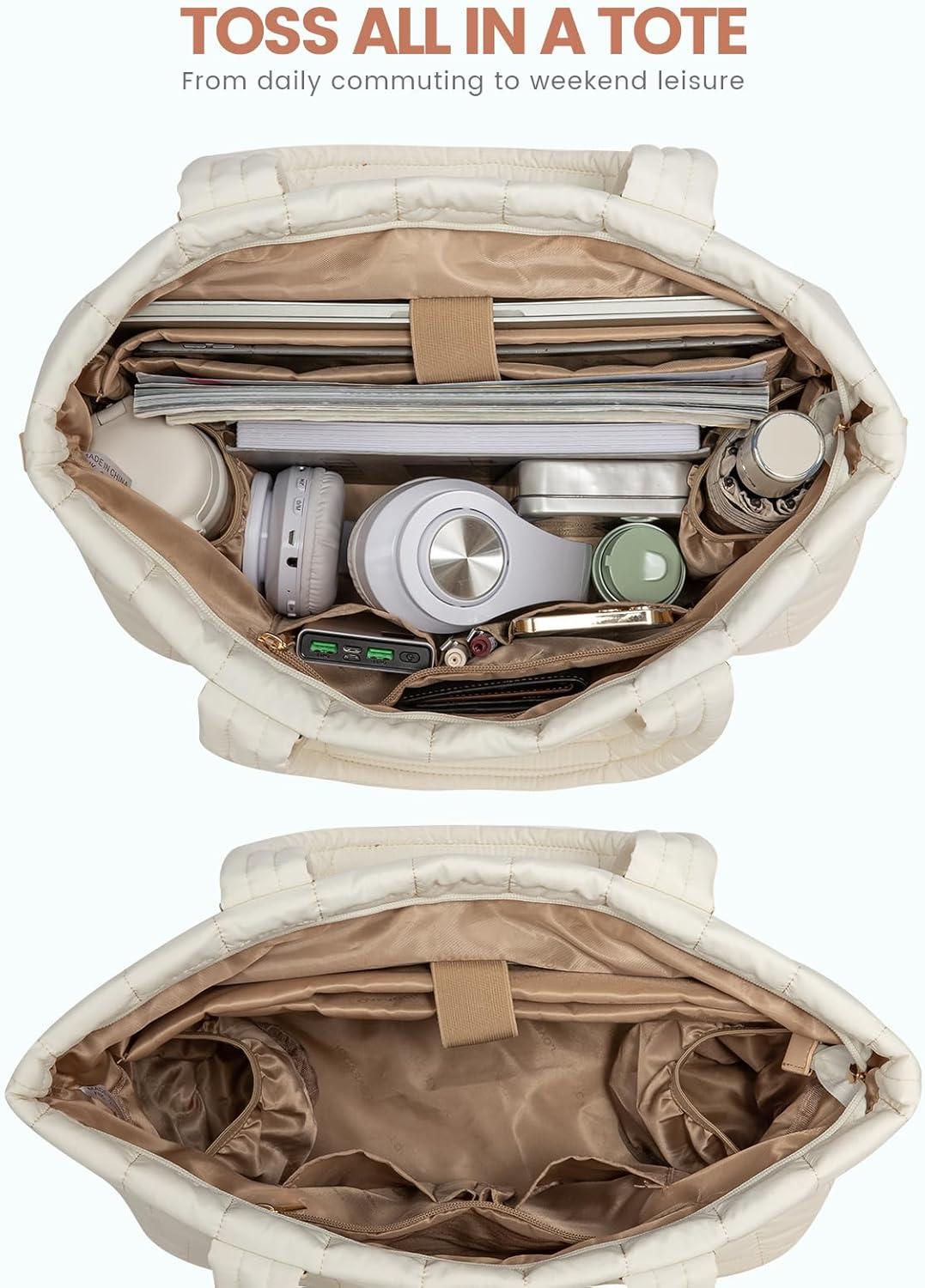 LOVEVOOK Tote Bag for Women, Large Puffer Tote Bag with Zipper Quilted Light Work Bag(Sandy)