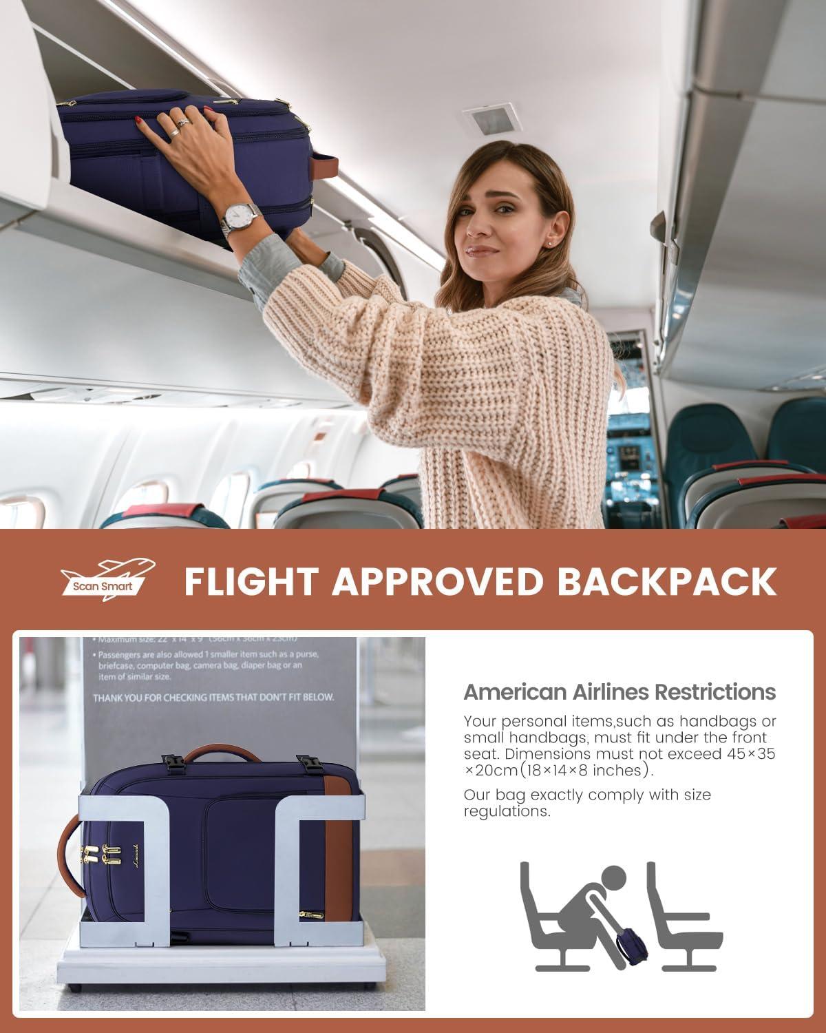 Airline Approved & TSA Friendly : Experience stress-free air travel with our carry on backpack. Measuring 14″ x 8.3″ x 18.5″, it fits comfortably in overhead bins and under the seat. Designed for quick security checks, it opens 180 degrees, making it the perfect travel companion for your journeys.